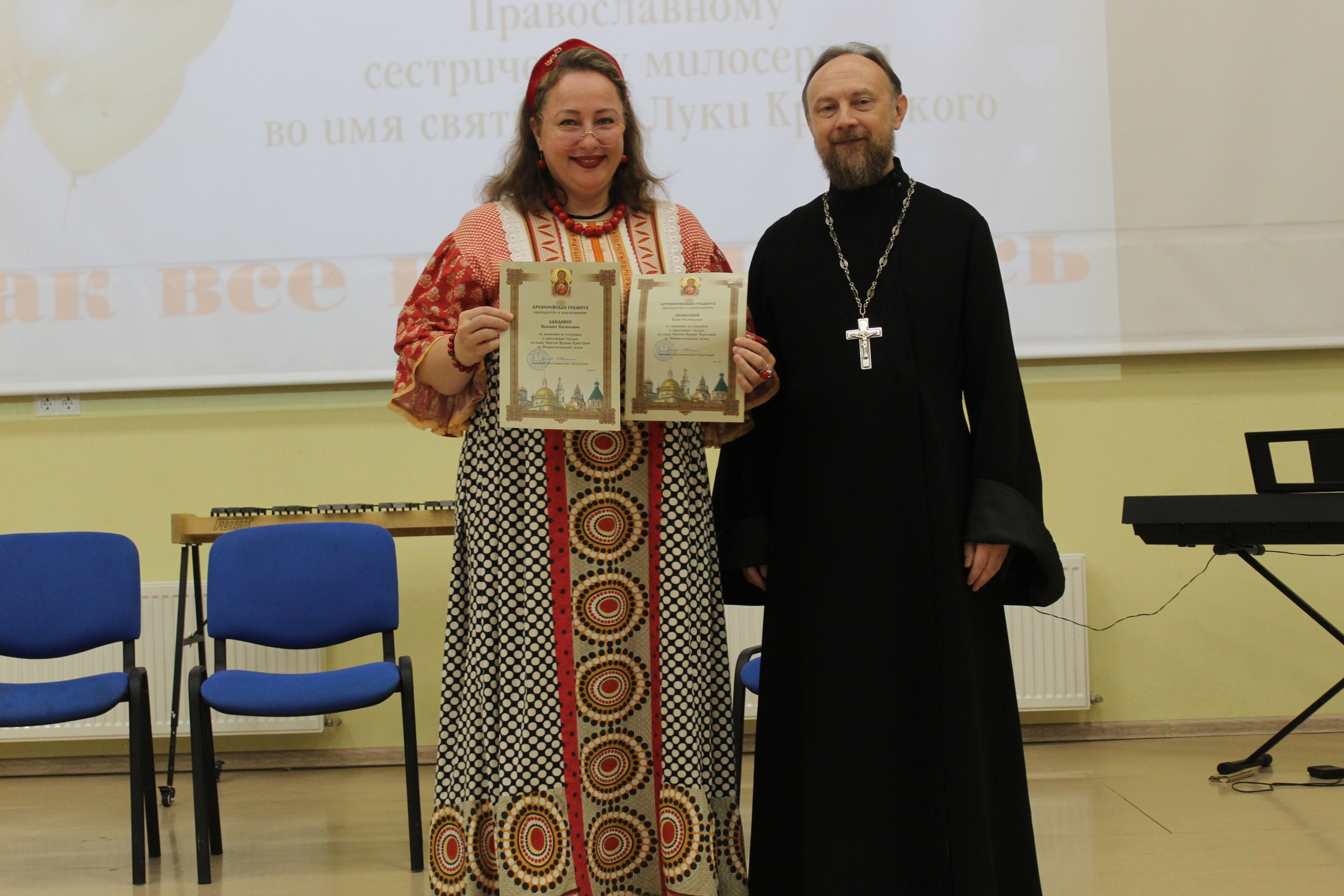 С поздравительным словом выступил духовник сестричества, руководитель отдела социального служения епархии протоиерей Олег Шабалин. Украшением праздника стали вокальный ансамбль «Лира», участники поэтического клуба «СТИХиЯ», творческие коллективы православной гимназии и Николо-Павловской детской школы искусств.