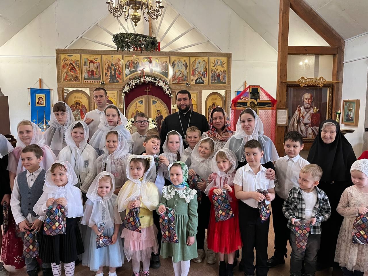 Настоятель храма в честь Казанской иконы божией Матери, г. Новоуральск, иерей Димитрий Лисник совершил Божественную литургию и накануне всенощное бдение. По окончании Божественной литургии всем приходом совершили крестный ход вокруг храма. А воспитанники воскресной школы «Благовест» поздравили всех прихожан Пасхальным концертом.