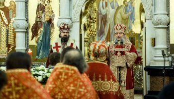 Архимандрит Мелитон сослужил, митрополиту Евгению и архиепископу Феофилакту за Божественной литургию в Храме-Памятнике на Крови