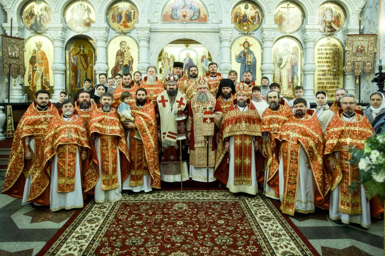Архипастырям сослужили глава Нижнетагильской кафедры архимандрит Мелитон (Зыбин), старший священник Храма-Памятника на Крови, руководитель отдела по взаимоотношениям Церкви с обществом и СМИ протоиерей Максим Миняйло, другие клирики Екатеринбургской митрополии и паломники из Пятигорской епархии в священном сане. За богослужением помолились жители и гости города.