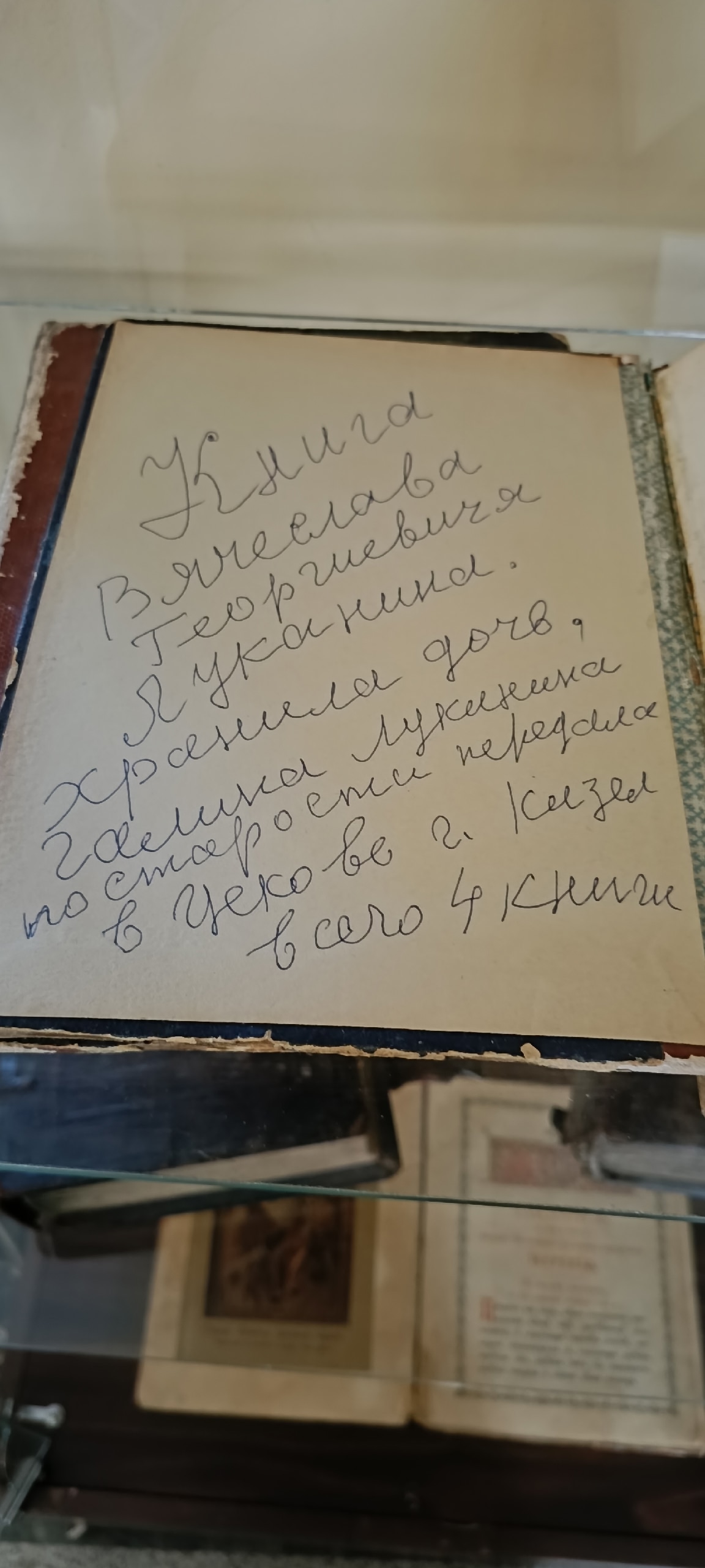 Особенностью этой экспозиции является то, что желающие могут среди прочего увидеть книги из личной библиотеки священномученика Вячеслава Луканина с его подписью. Эти книги были переданы на хранение в наш собор родственниками священномученика.