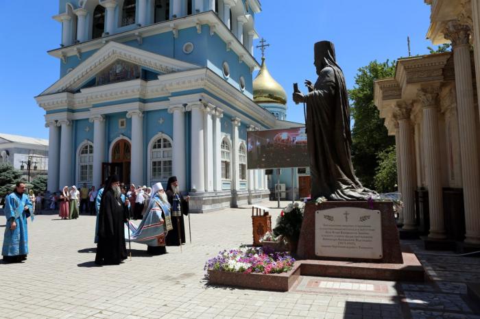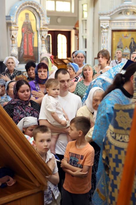 После Таинства Причастия и заамвонной молитвы архипастыри вознесли молитву ко Пресвятой Богородице перед Её чудотворным образом «Тихвинская. Слезоточивая». Затем митрополит Викентий обратился к верующим с проповедью, поздравив всех с Днём епархии и годовщиной обретения святыни: