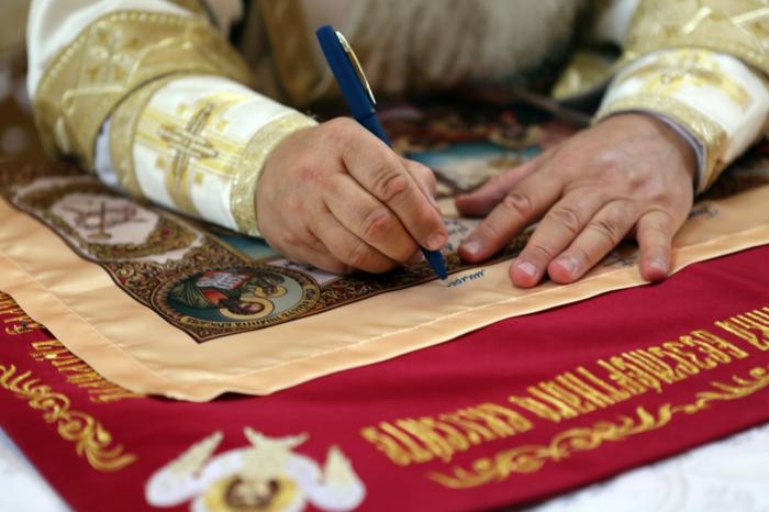 В завершение богослужения митрополит Викентий обратился к собравшимся с архипастырским словом. Он поздравил всех с этим историческим днём и особо поблагодарил сослуживших ему архипастырей — епископа Феодосия и епископа Савватия — за совместную службу и радость молитвенного общения, подчеркнув единство и братскую поддержку внутри Среднеазиатского митрополичьего округа.