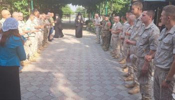 Епископ Феодосий пообщался с военнослужащими, окропил их святой водой.