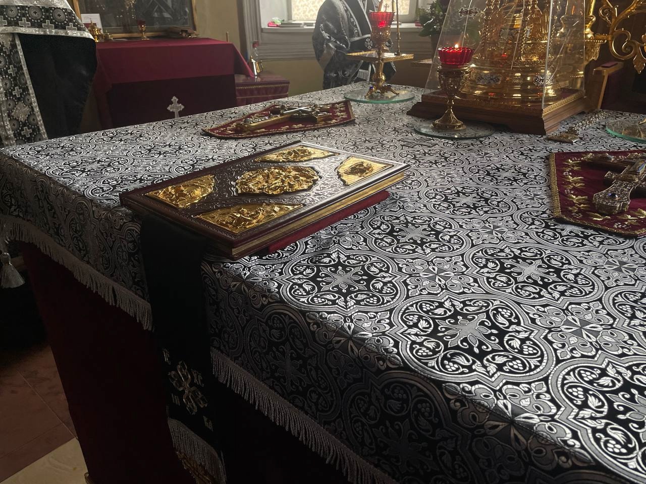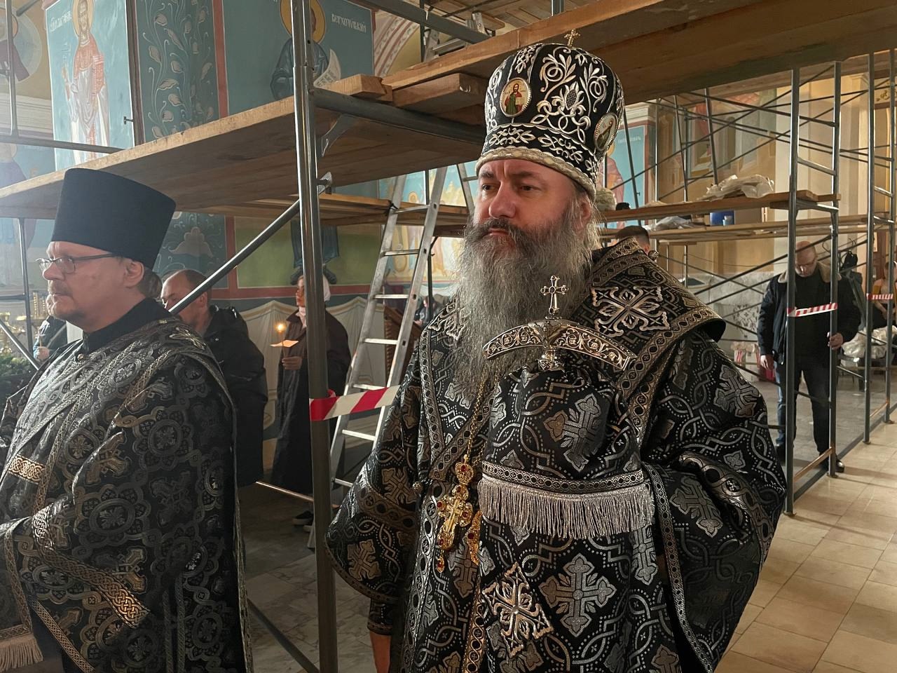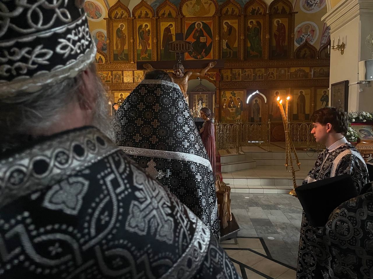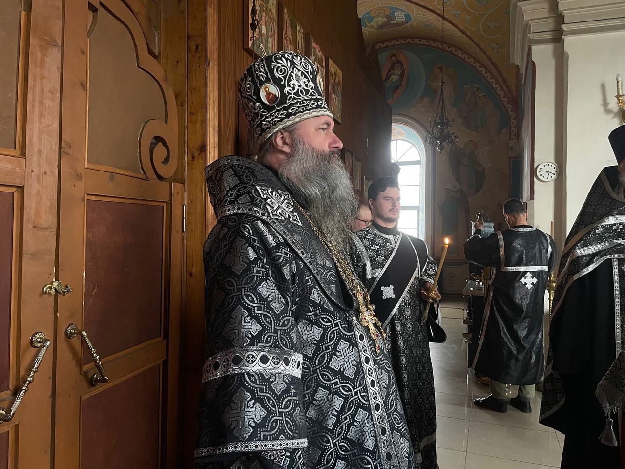 Его Преосвященству сослужили ключарь собора иерей Василий Рекун, иерей Евгений Самойлов, иерей Николай Иванов и иерей Кирилл Бельмесов.