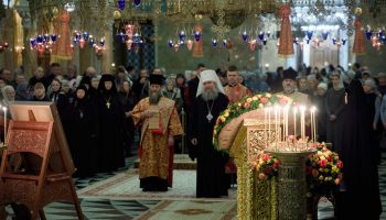За богослужением молились монашествующие уральских обителей, в том числе, настоятельница Александро-Невского Ново-Тихвинского монастыря игумения Домника (Коробейникова), настоятельница Свято-Елисаветинского монастыря Алапаевской епархии игумения Смарагда (Зыкова), настоятельница верхотурского Свято-Покровского женского монастыря игумения Магдалина (Сулеменева), сестры уральских обителей.