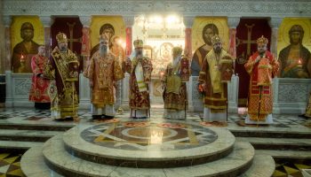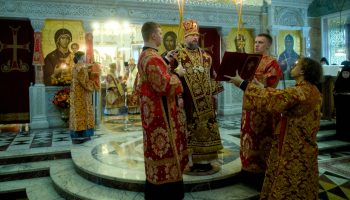 Архипастырям сослужили секретарь Екатеринбургской епархии протоиерей Николай Тарантин, настоятель Преображенской церкви города Екатеринбурга митрофорный протоиерей Николай Ладюк, настоятель Свято-Троицкого собора митрофорный протоиерей Николай Малета, благочинный Монастырского округа Екатеринбургской епархии игумен Иероним (Миронов), руководитель отдела по утверждению трезвости и профилактике зависимостей, настоятель Никольского храма при Уральском горном университете протоиерей Игорь Бачинин; старший священник Храма-Памятника на Крови, руководитель отдела по взаимоотношениям Церкви с обществом и СМИ протоиерей Максим Миняйло, настоятель Успенского храма города Верхняя Пышма, ректор Екатеринбургской духовной семинарии иеромонах Корнилий (Зайцев), духовенство собора и другие клирики Екатеринбургской епархии.