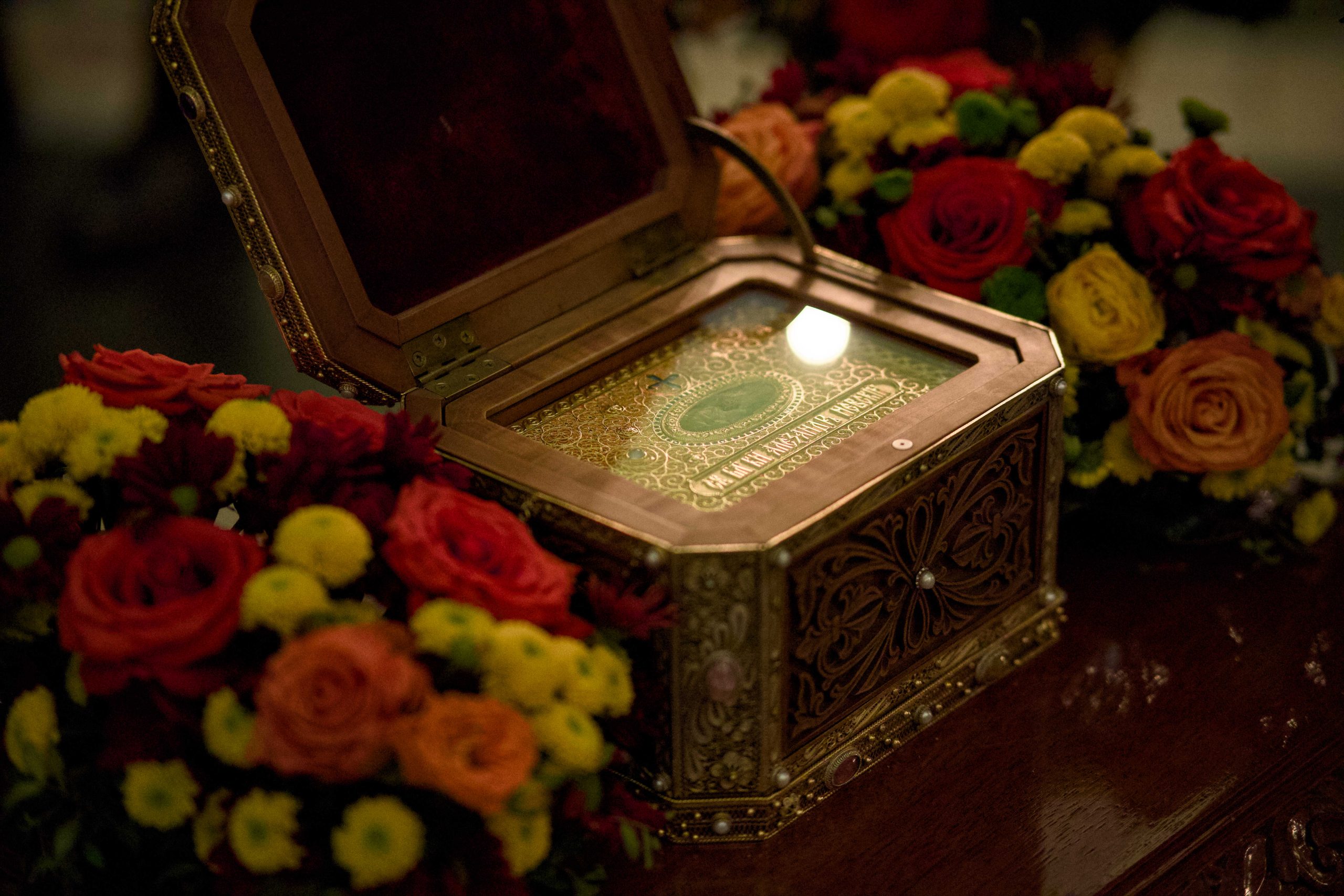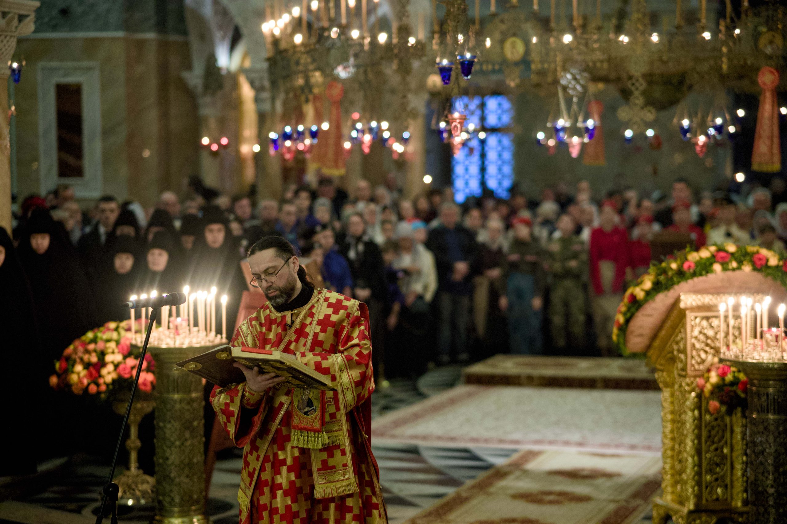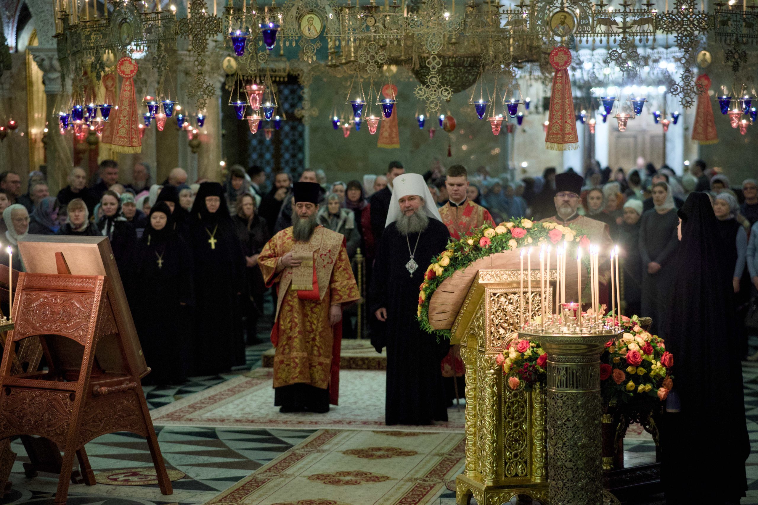 Несмотря на будний день, за богослужением присутствовало множество прихожан. Причастие Святых Христовых Тайн совершалось из 12 Чаш.