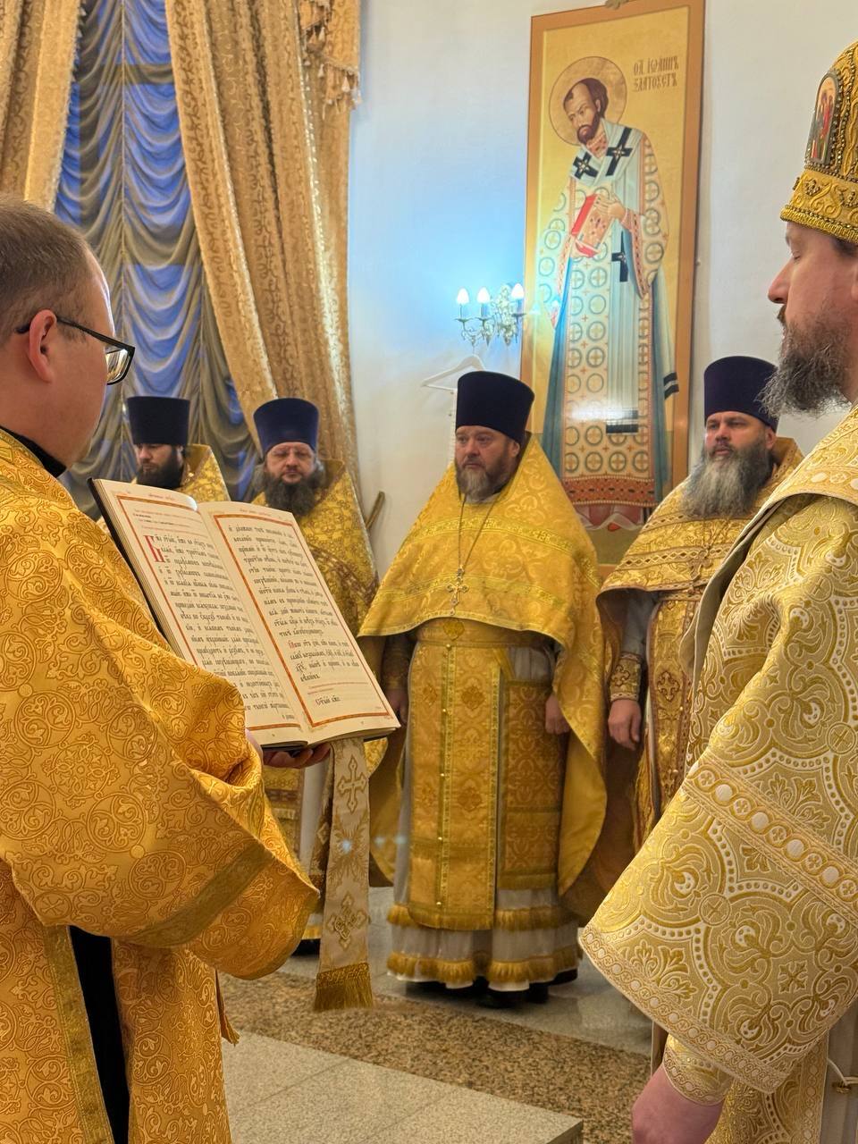 Его Преосвященству сослужили: секретарь епархиального управления иерей Василий Рекун, настоятель храма и благочинный Западного церковного округа протоиерей Геннадий Чечулин, протоиерей Димитрий Меньшиков, протоиерей Александр Кузнецов, иерей Алексий Занозин, иерей Георгий Верниковский, иерей Димитрий Саватеев, иерей Александр Маслов.