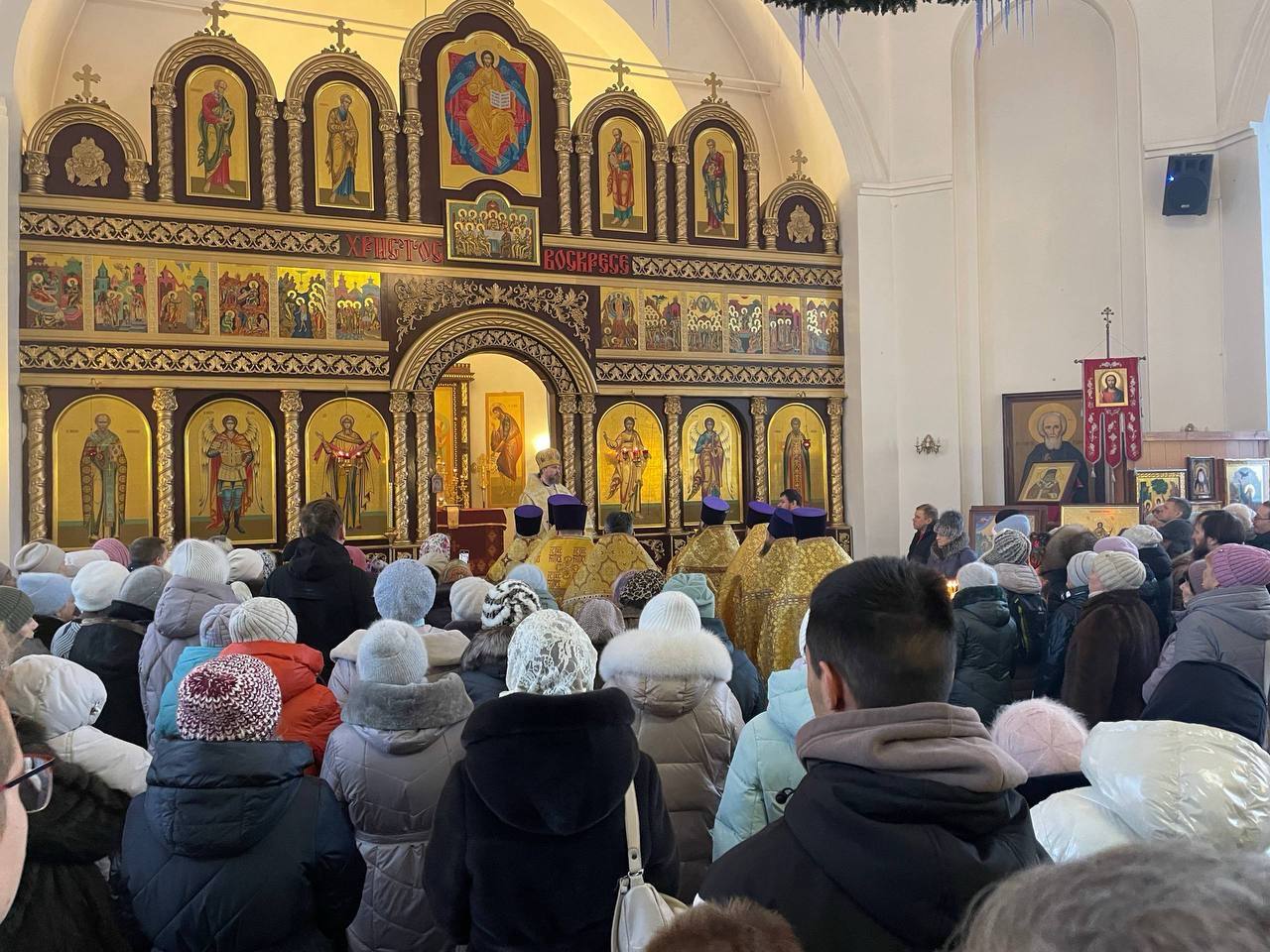 При выходе из Храма Его Преосвященство поблагодарил духовенство, хор, прихожан за совместные молитвы и преподал всем архипастырское благословение.