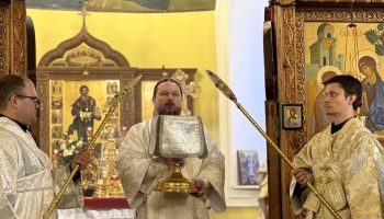 Его Преосвященству сослужили: ключарь Кафедрального Свято-Троицкого Собора иерей Василий Рекун, и многочисленные гости в священном сане Нижнетагильской епархии.
