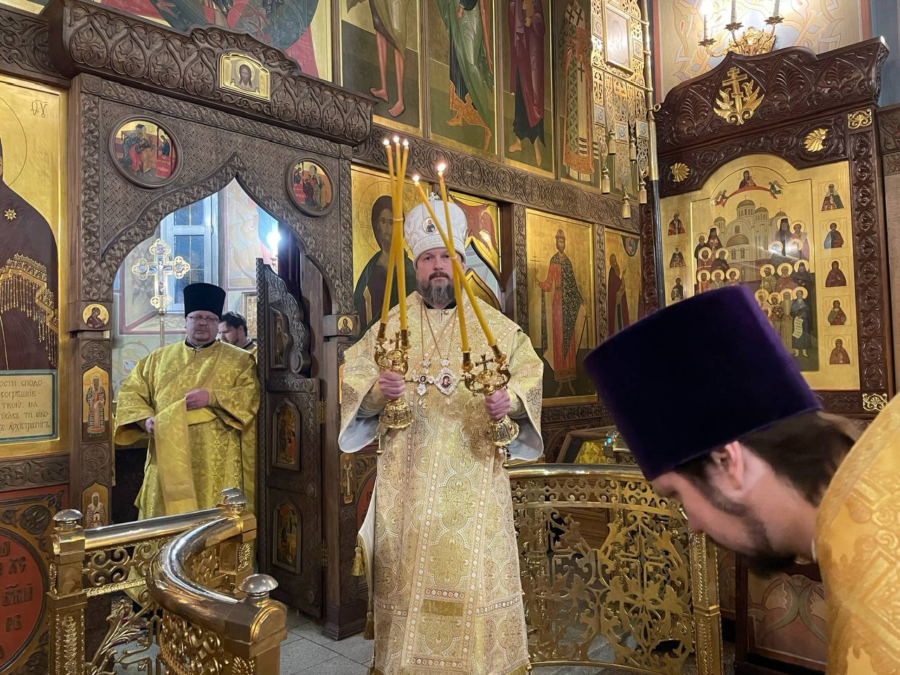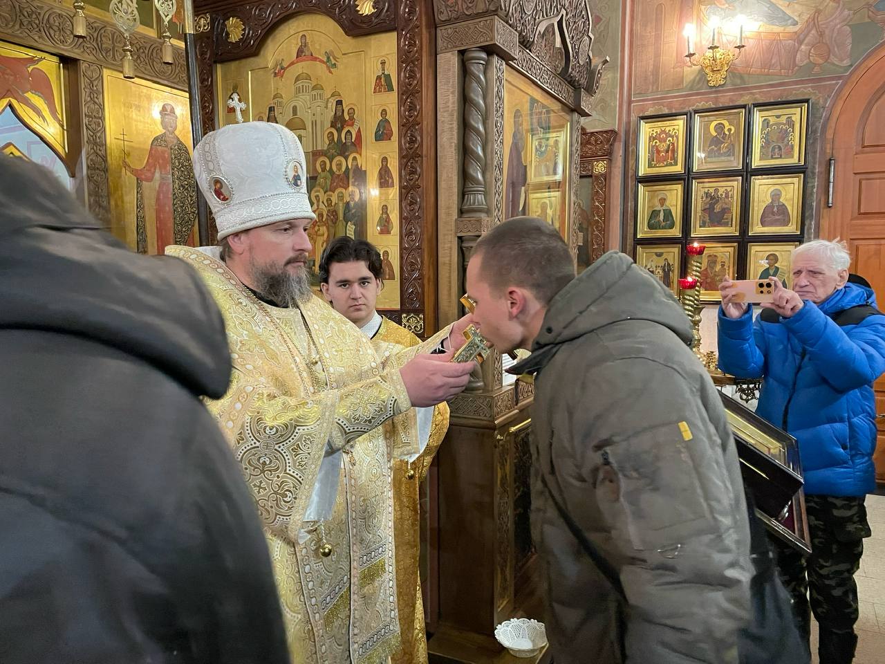 При выходе из Собора Его Преосвященство поблагодарил духовенство, хор, прихожан за совместные молитвы и преподал всем архипастырское благословение.