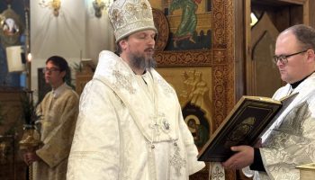 Его Преосвященству сослужили: ключарь Кафедрального Свято-Троицкого Собора иерей Василий Рекун, и клирики Кафедрального Собора.