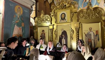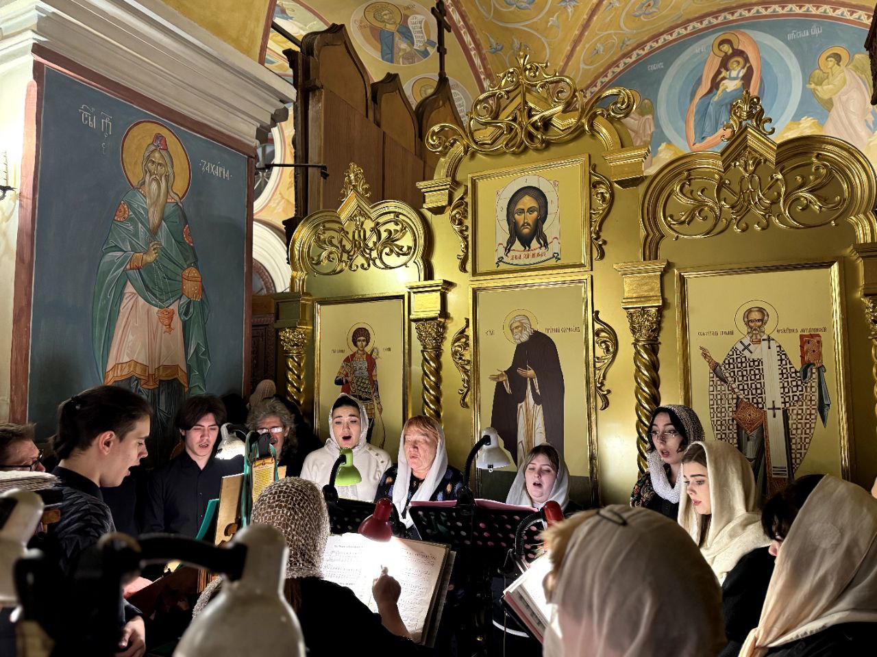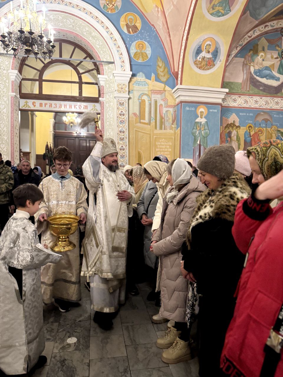 Богослужебные песнопения исполнил кафедральный хор под управлением регента Ольги Муравлёвой.