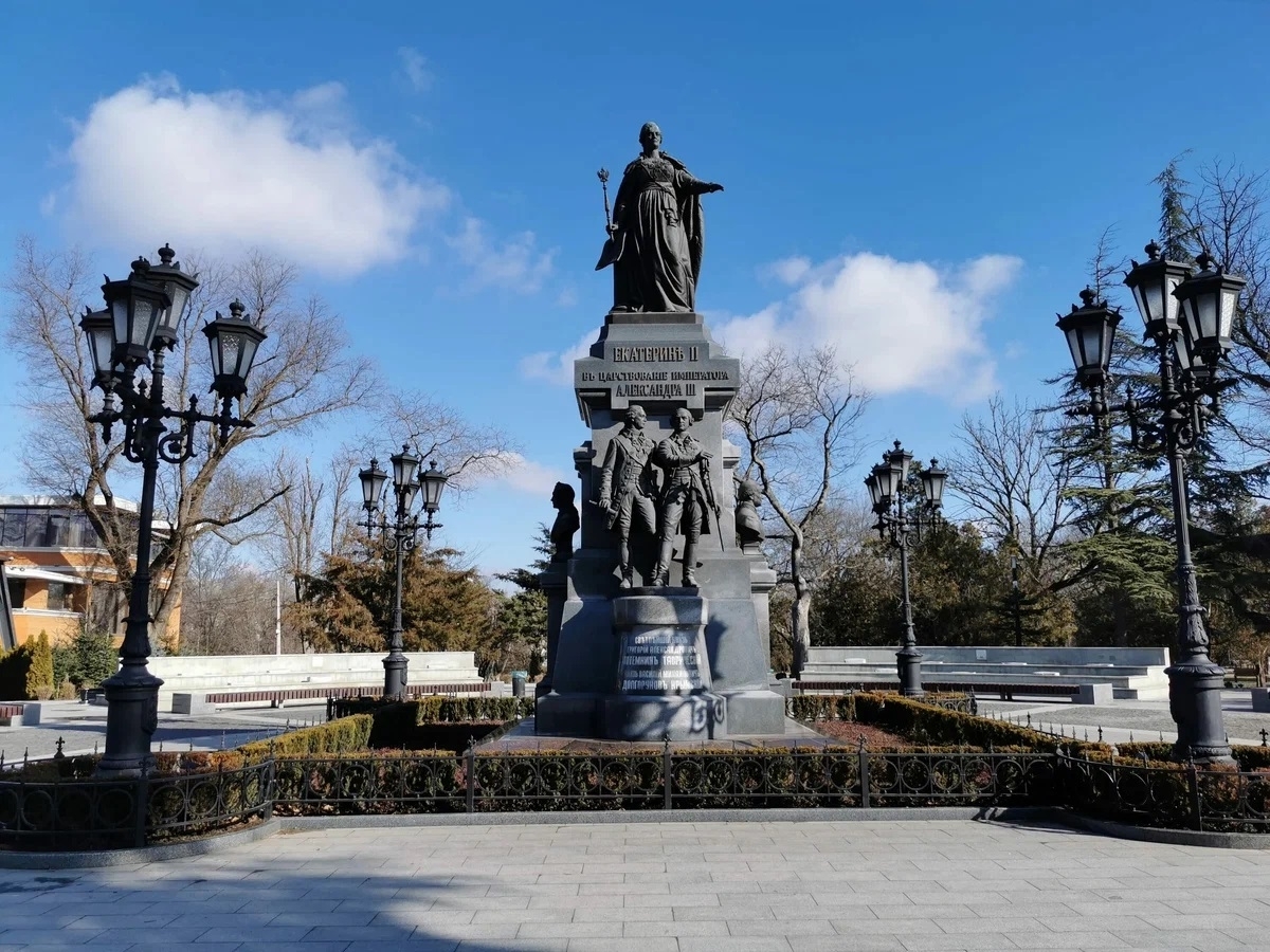 На фото: памятник святому равноапостольному князю Владимиру и Свято-Владимирский собор в Севастополе, памятник императрице Екатерине II Великой в Симферополе