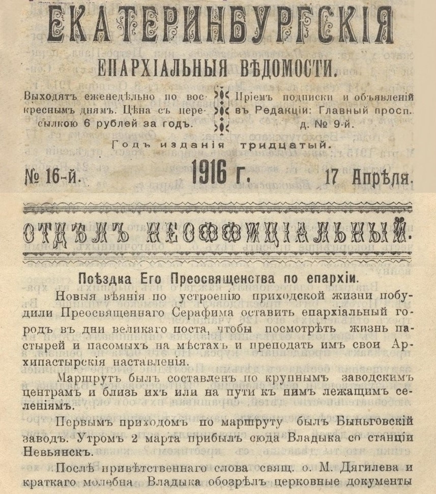 (Благодарность в подготовке материала члену Российского военно-исторического общества Роману Леонидовичу Арефьеву. По материалам «Екатеринбургских епархиальных ведомостей», № 16 от 17 апреля 1916 года)