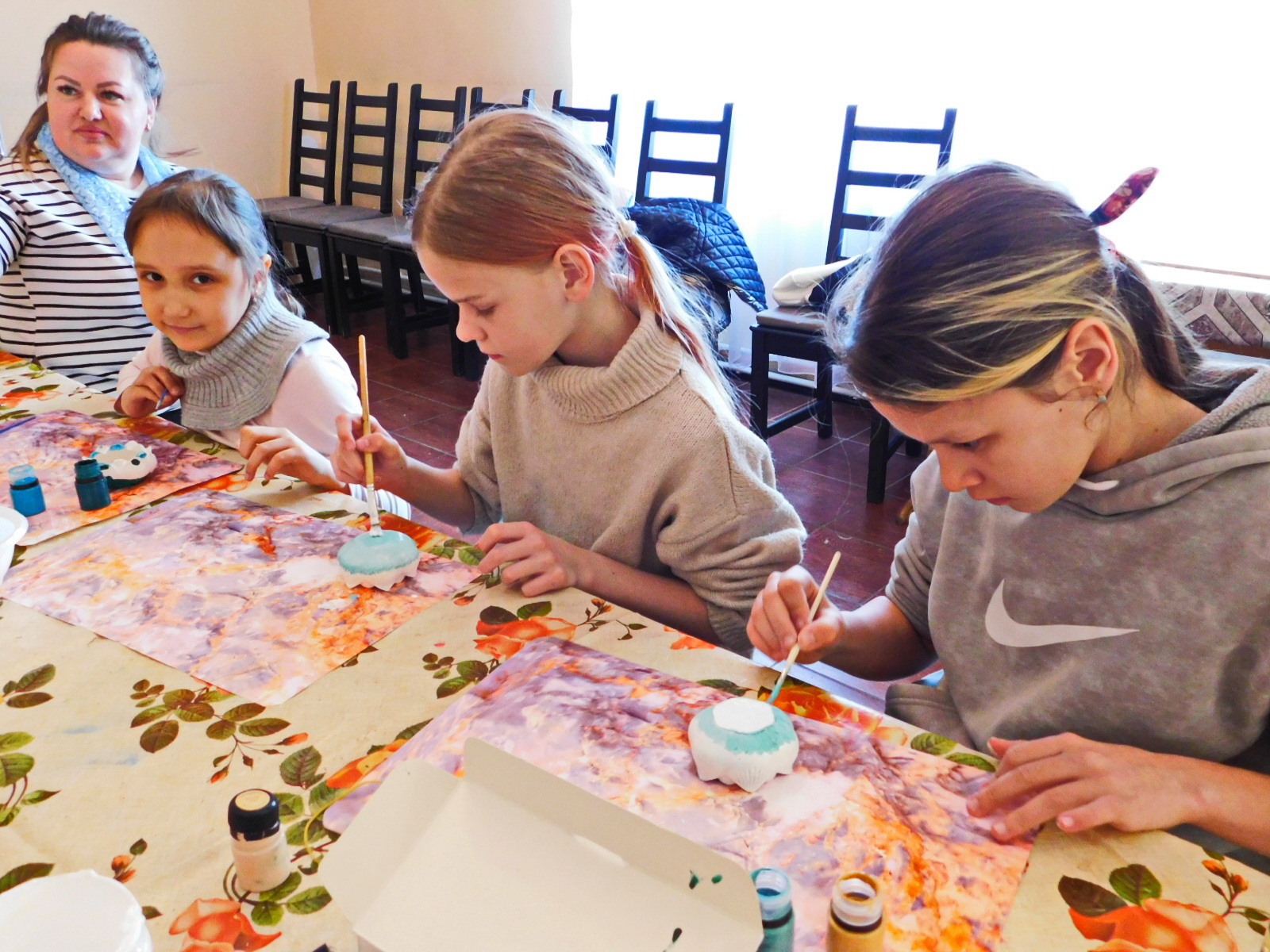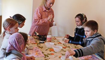Учащиеся воскресной школы «Чистое сердце» Знаменского храма традиционно украшают храм к православным праздникам: Рождеству Христову и Воскресению Христову. Обучает основам построения композиции занимается с ребятами Валентина Владиславовна Коробицына. Подготовка к составлению композиции стал творческий урок, где учащиеся плавили -заливали восковые формы свеч с фитилем и разукрашивание акриловыми красками.