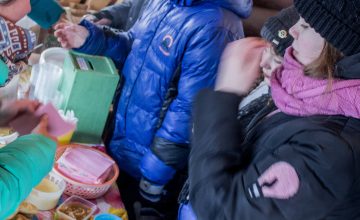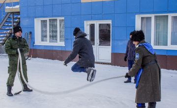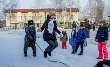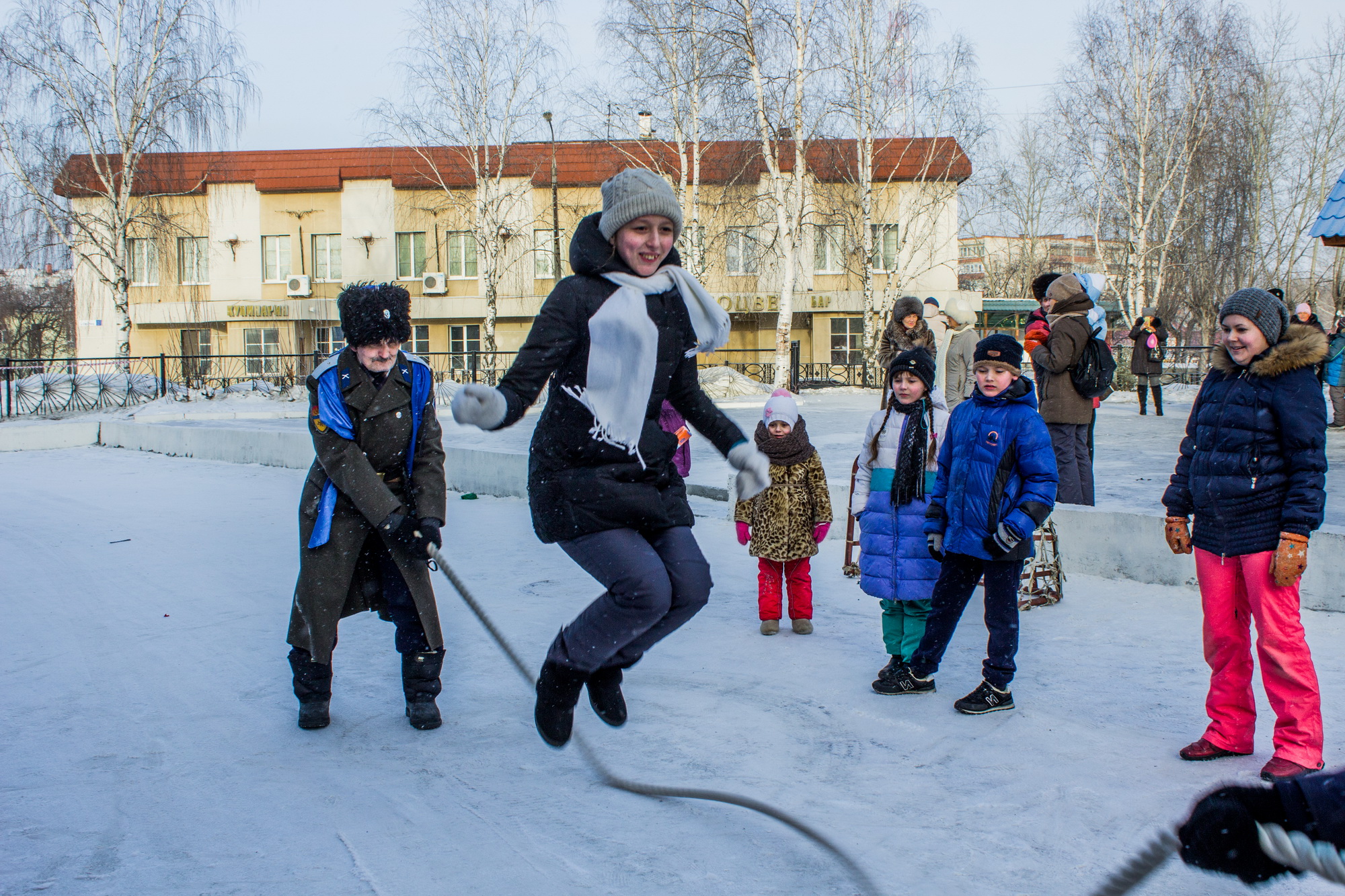 За прыжки через большую скакалку, битвы на учебных мягких шашках, перетягивание каната, за многочисленные сражения «стенка на стенку» и участие в других зимних уличных забавах православному люду вручали жетончики, на которые те могли получить блины с чаем и другие угощения Масленицы. Взрослые наравне с детьми тоже успевали померяться силушкой богатырской под задорные казачьи песни. А пожилые прихожане, тоже преисполненные радости, водили хороводы.
