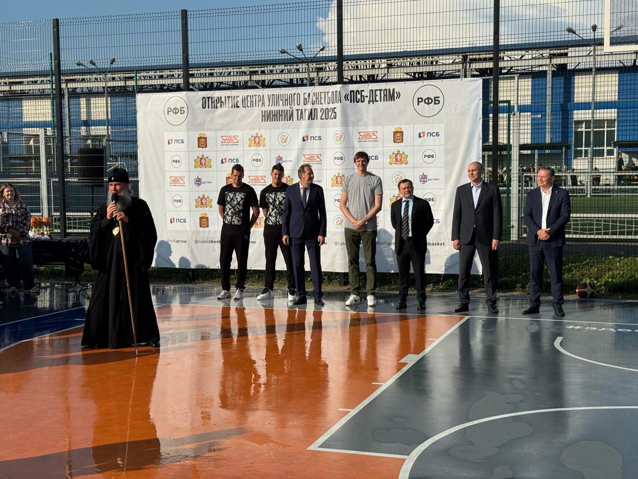 В Нижнем Тагиле, в дворцовом парке Уралвагонзавода, 14 августа 2025 года, на торжественном открытии площадки юных спортсменов поприветствовали врио губернатора Свердловской области Денис Владимирович Паслер, генеральный директор Концерна «Уралвагонзавод» Александр Валерьевич Потапов, глава города Нижний Тагил Владислав Юрьевич Пинаев, председатель банка ПСБ Петр Михайлович Фрадков, президент Российской федерации баскетбола, заслуженный мастер спорта Андрей Геннадьевич Кириленко.