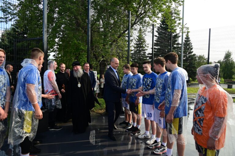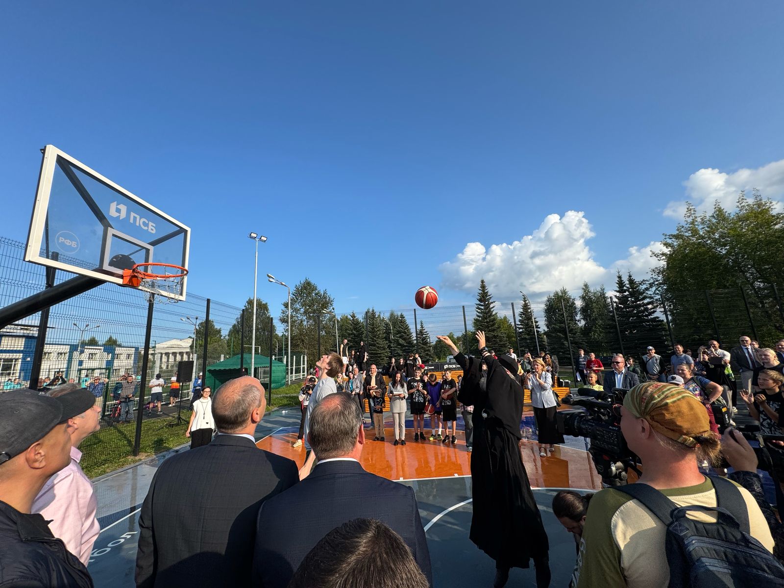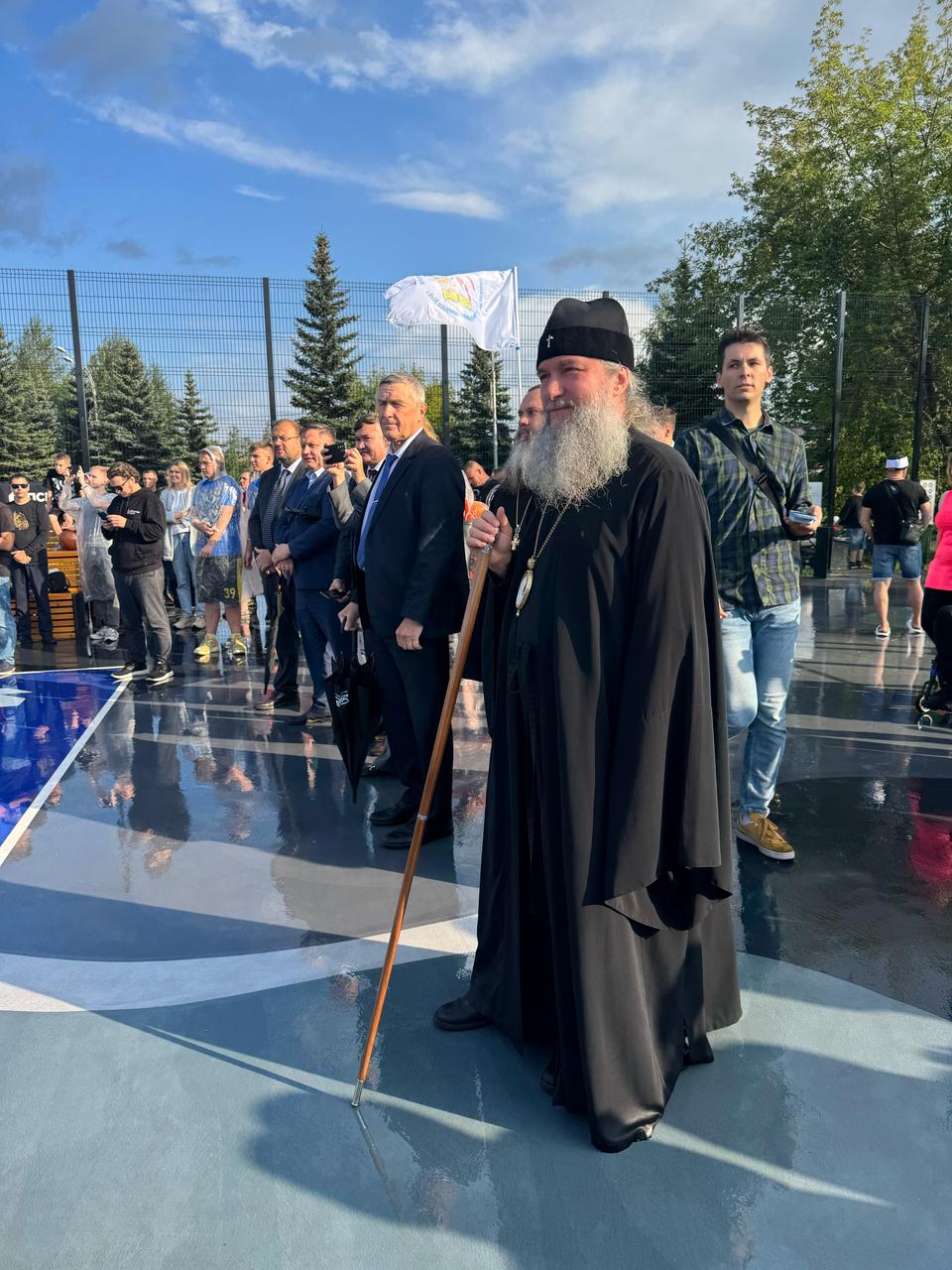 Митрополит Екатеринбургский и Верхотурский Евгений 14 августа 2025 года принял участие в открытии первого на территории уральского региона Центра уличного баскетбола.