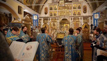 По окончании Всенощного бдения было совершено торжественное славление Казанской иконе Божией Матери, и архипастырь преподал молящимся своё благословение.