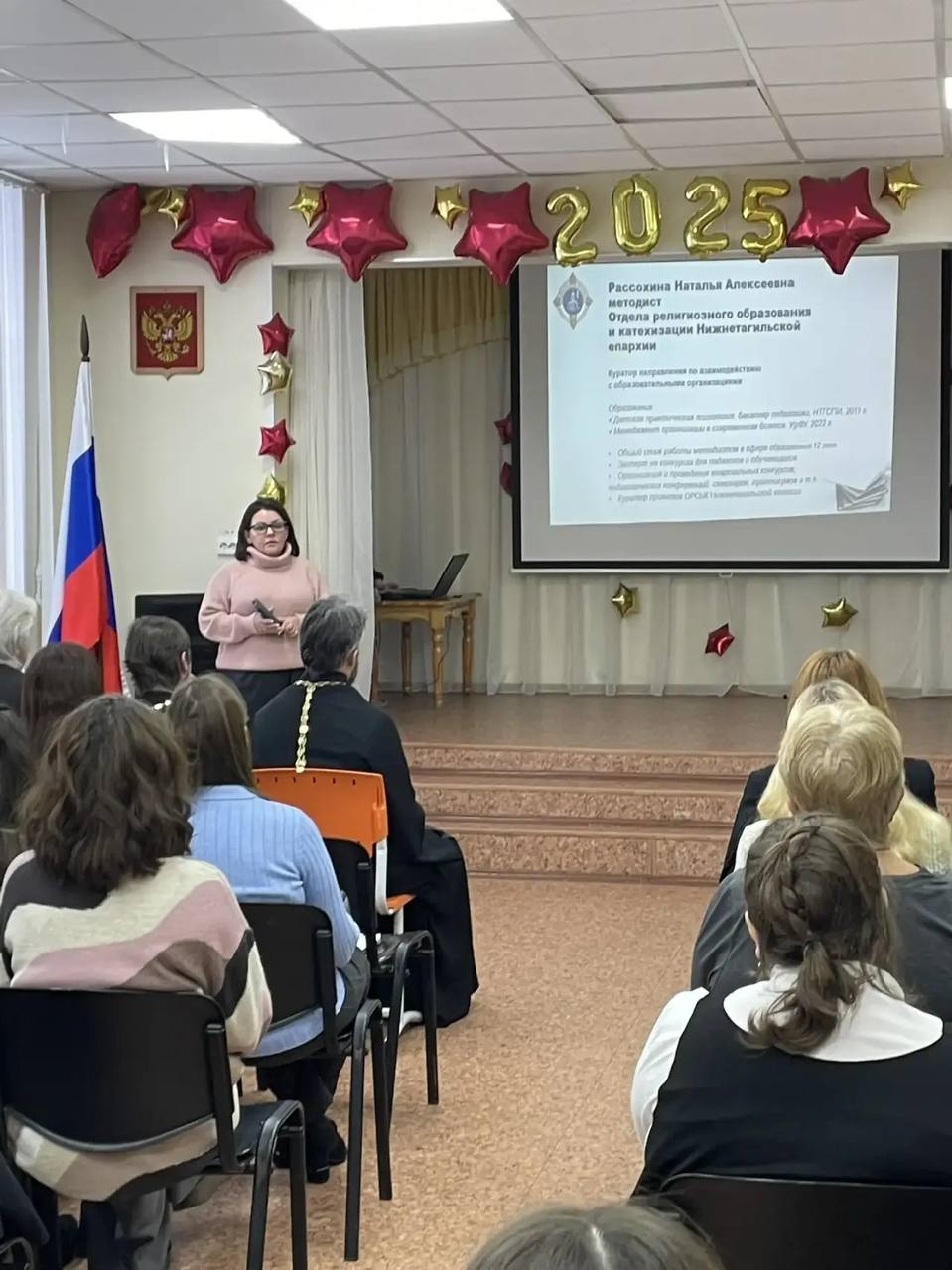 С докладом выступила методист отдела религиозного образования и катехизации Нижнетагильской епархии Рассохина Наталья Алексеевна.