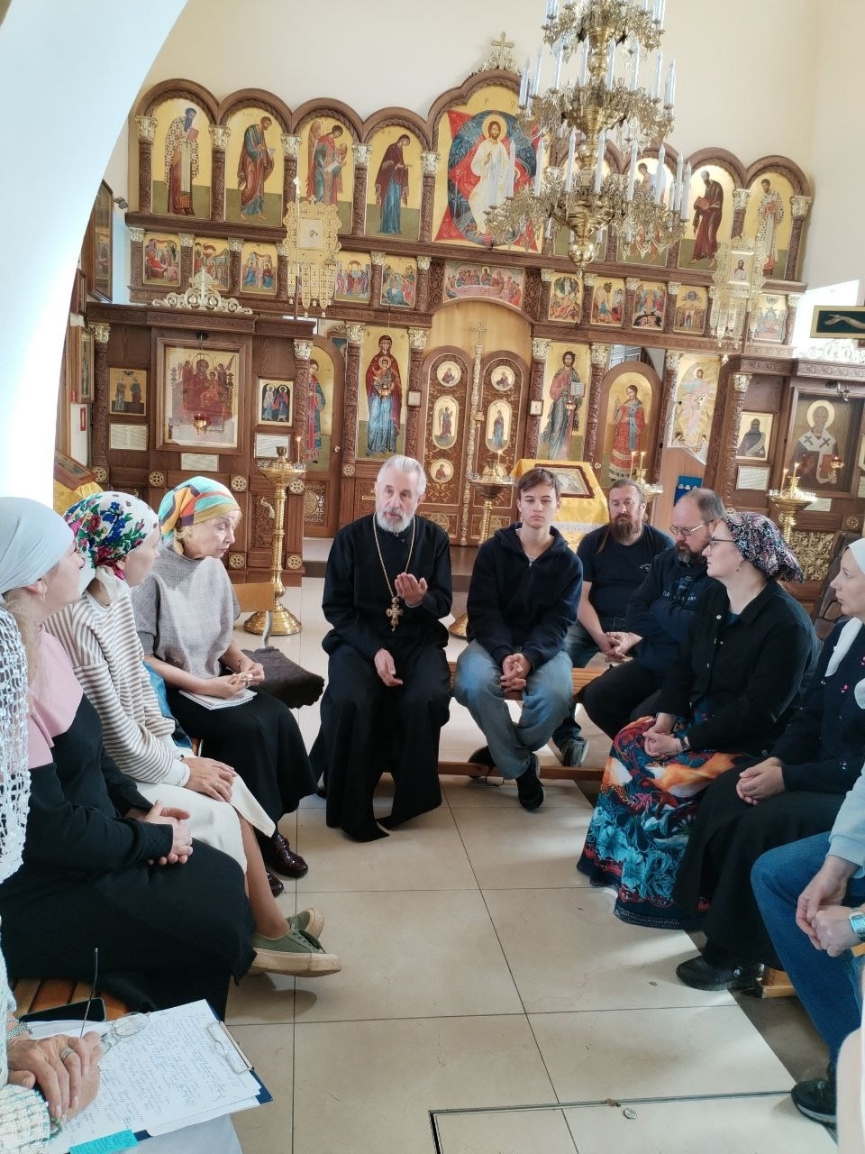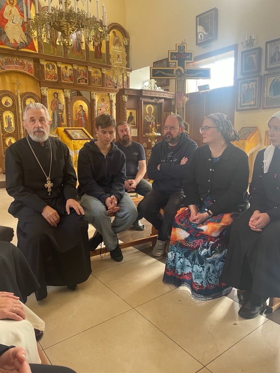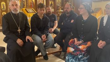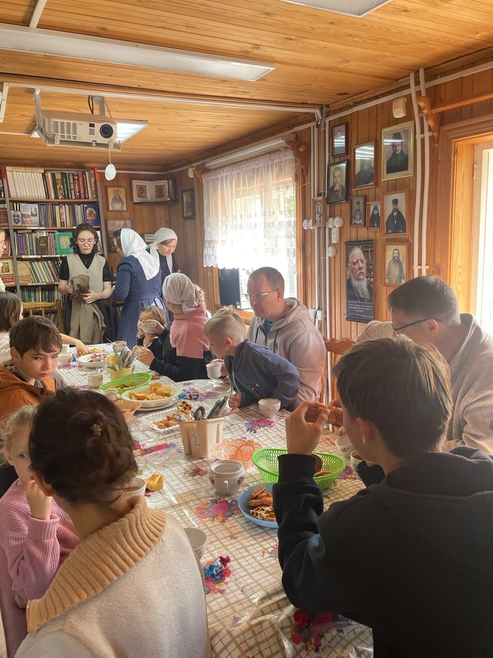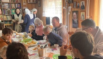 На Божественной Литургии причастились и после праздничной трапезы с родителями состоялся серьёзный разговор о том, как стать православными родителями и помочь детям в их духовном развитии.