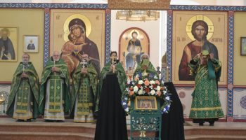 В этом году праздничное богослужение по благословению Преосвященного Феодосия, епископа Нижнетагильского и Невьянского, возглавил благочинный Центрального благочиния Нижнетагильской епархии, настоятель храма во имя святого благоверного князя Александра Невского митрофорный протоиерей Геннадий Ведерников. Ему сослужил собор духовенства Центрального благочиния.