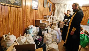 Прихожане Знаменского храма города Верхний Тагил в течении сентября-октября-ноября формировали по несколько отправок каждый месяц гумпомощи на СВО. Это были и именные посылки воинам с позывным Ясень — отправка с казаками волонтерской группы хутора Знаменский «Братское сердце»- ОКБ- Оренбургского Казачьего Братства и воину с позывным Импульс. Перед каждой отправкой протоиерей Александр Поляков служил молебен и освящал гумпомощь.