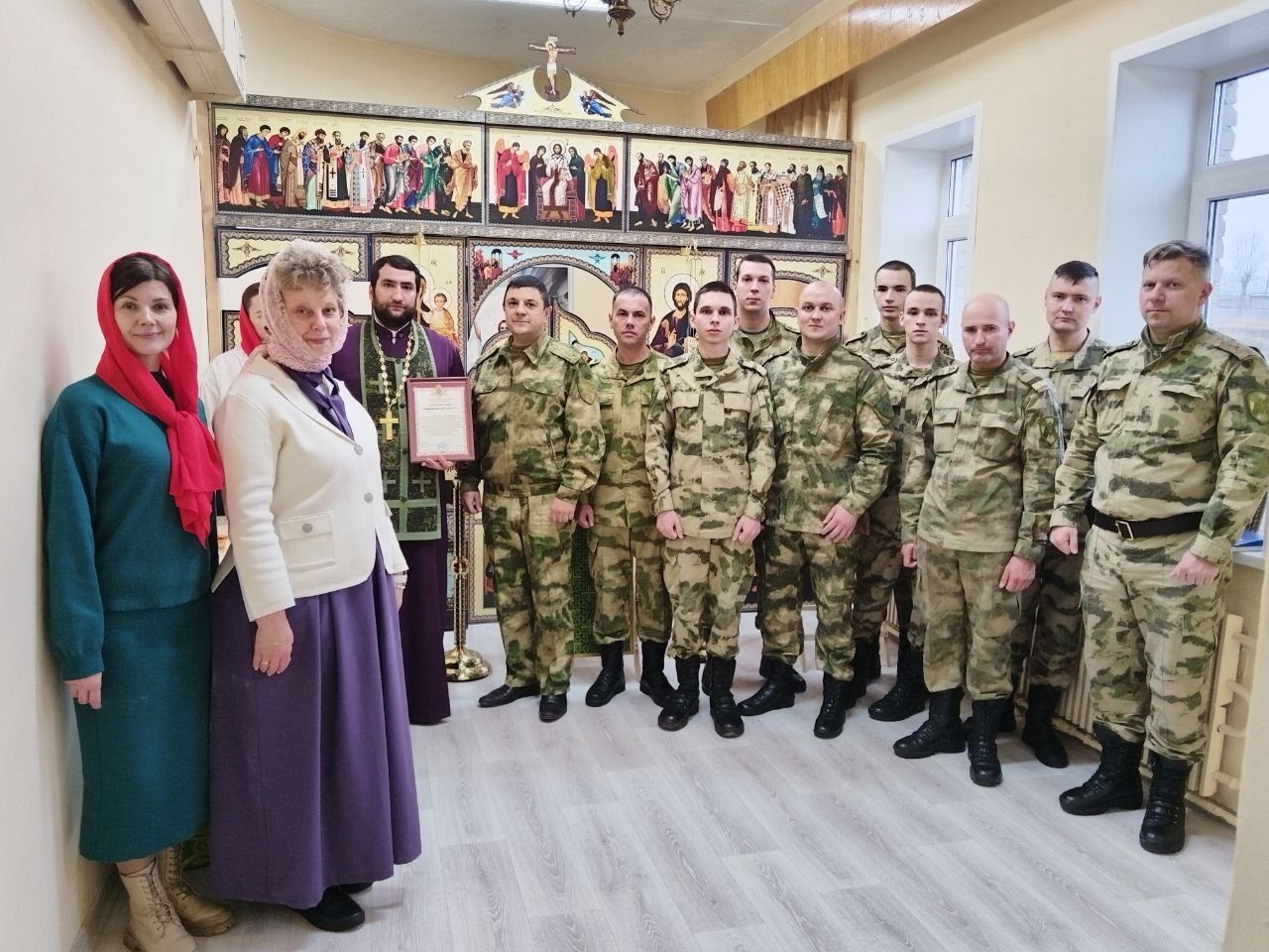 Открытие молитвенной комнаты стало возможным благодаря грантовой поддержке конкурса «Православной инициативы». В мероприятии приняли участие военнослужащие и офицерский состав части. По окончании молебна заместитель командира части вручил окормляющему священнику, отцу Дмитрию, памятный адрес за взаимодействие и духовную поддержку военнослужащих.
