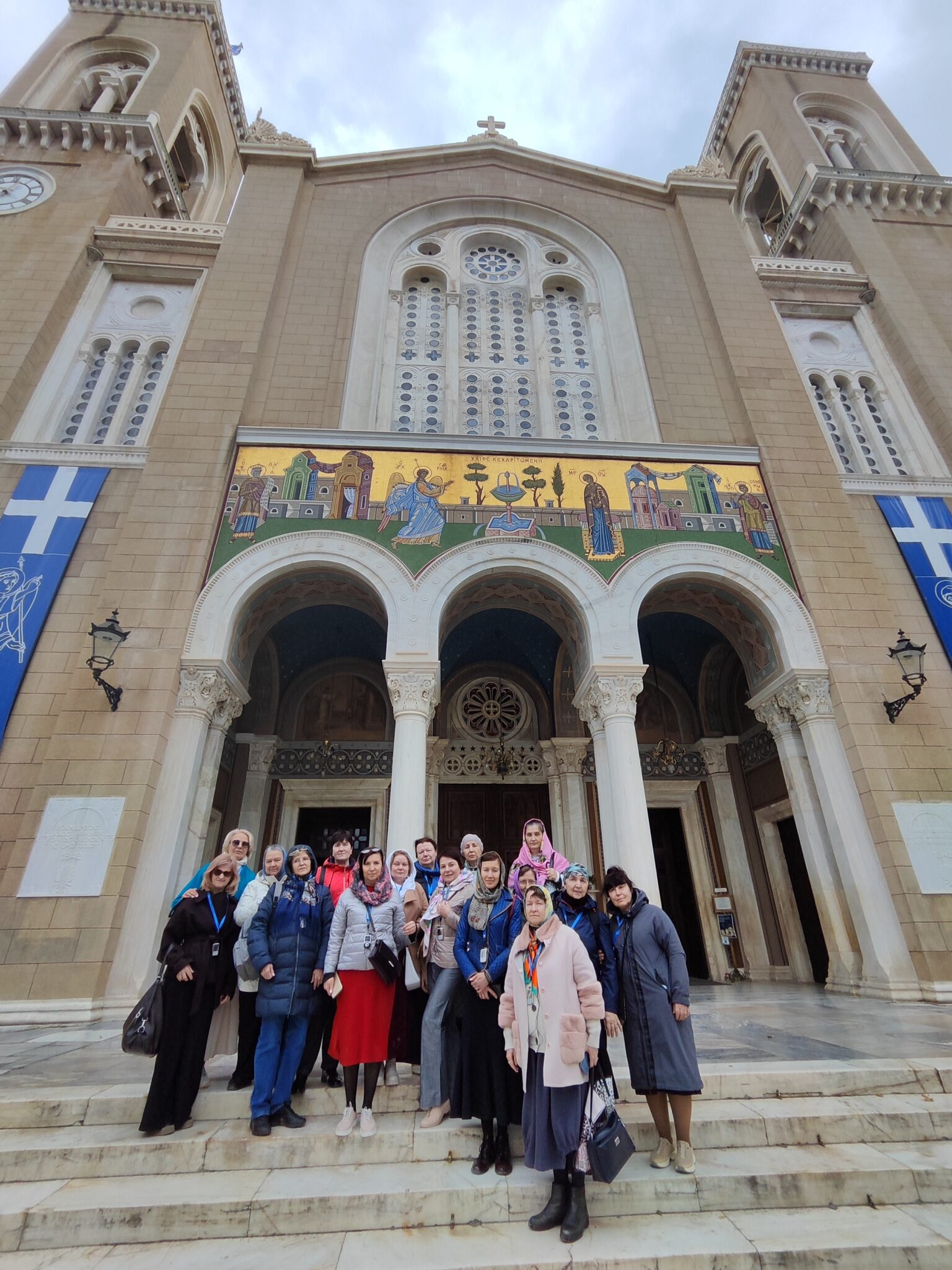 Афинская земля пропитана и освящена кровью святых мучеников. Мы пошли поклониться священномученику Григорию V, Патриарху Константинопольскому. Он трижды восходил на Патриарший престол, когда Греция находилась под тяжелым турецким игом. В день Святой Пасхи 10 апреля 1821 года, сразу после Пасхальной литургии, в полном патриаршем облачении турки повесили его на воротах Патриархии.