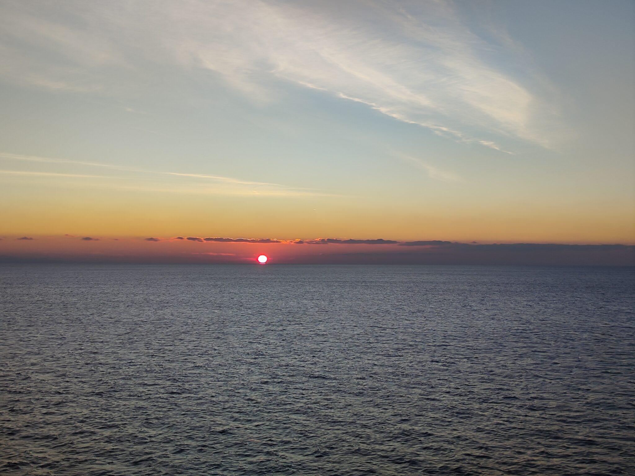 Во второй день круиза ранним утром мы прошли через пролив Дарданеллы, оставив позади турецкие воды и направляясь к Корфу. Наш маршрут проходил между живописными греческими островами на юго-запад до мыса Малеас, после чего мы вышли в Ионическое море. Утром любовались восходом солнца в открытом море.
