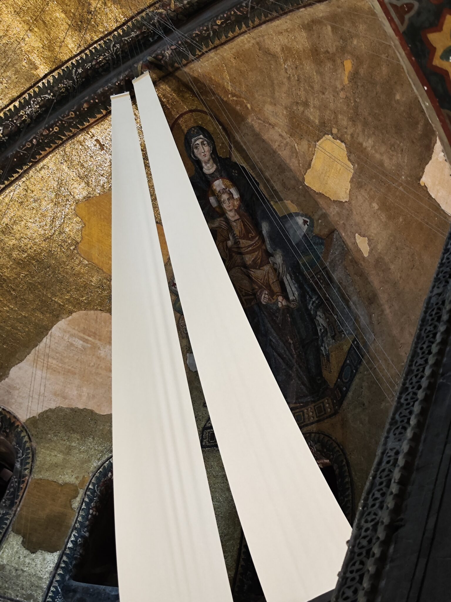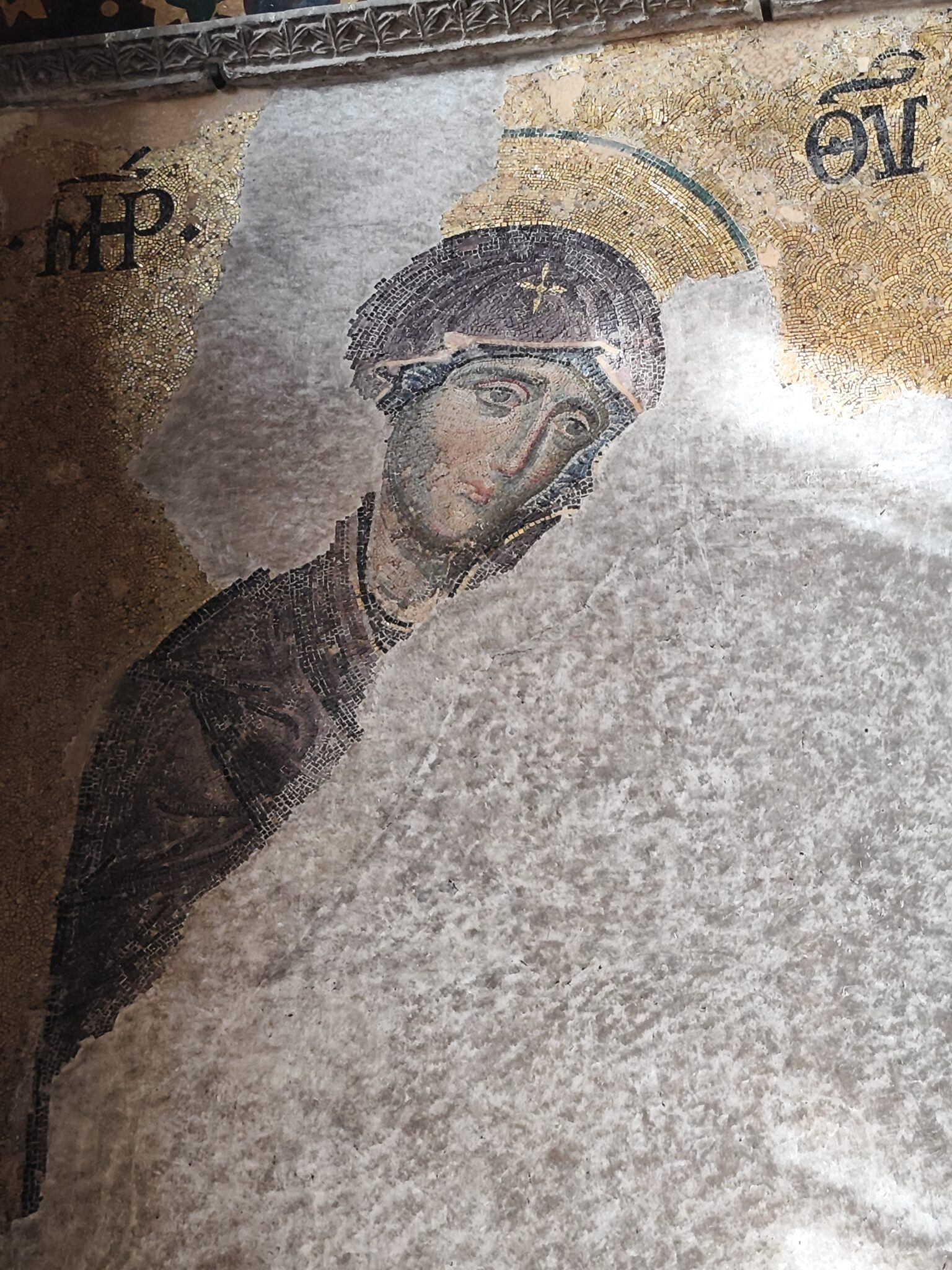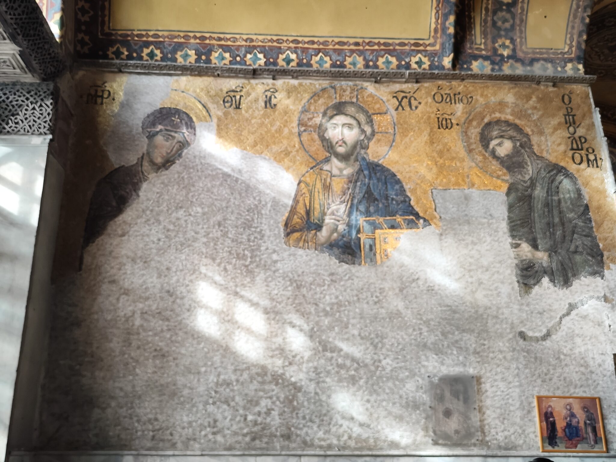 Собору Святой Софии, куда стремилось наше сердце, полторы тысячи лет! Это символ «золотого века» Византии. С середины XV века храм является мечетью и вход на первый этаж для православных паломников из России закрыт. На куполе исламский полумесяц сменил крест. В 1935 году бывший патриарший православный собор получил статус музея. С трепетом поднялись мы на второй этаж собора по отполированному временем пологому пандусу. Пол гладко блестел от множества шагов тех, кто прошел тут до нас. Долго стояли мы перед печальным ликом Пресвятой Богородицы и перед величественным образом Иисуса Христа, размышляя каждый о своем. Поразила красота и спокойствие Божией Матери на мозаике в алтарной части собора. Лик Ее перекрыт фанерными листами так, чтобы его не было видно с первого этажа. И увидеть Богородицу можно только с одной точки на балконе, куда выстроилась огромная очередь из посетителей.