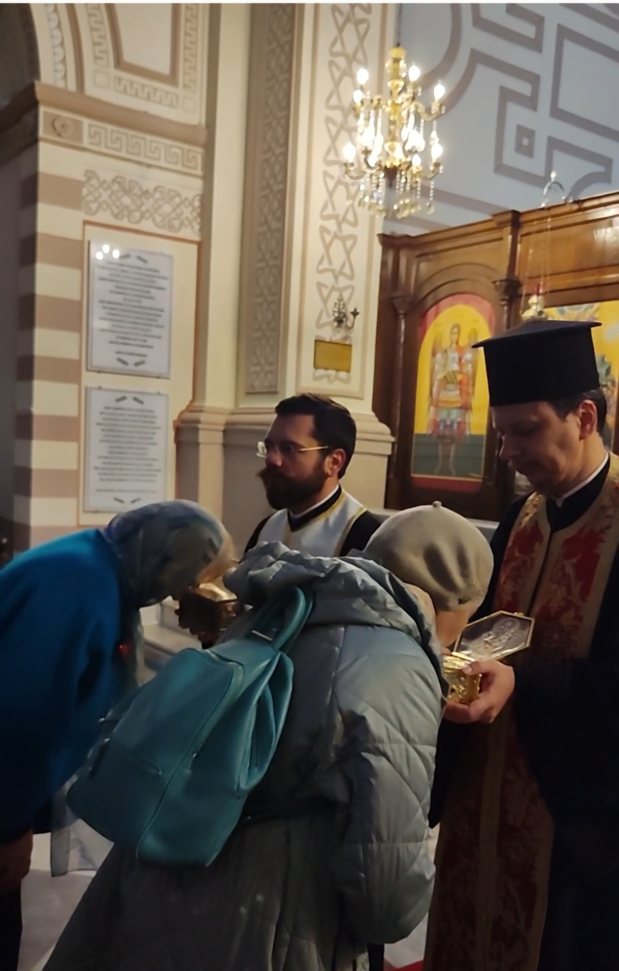«В базилике у нас появилась возможность присутствовать на Божественной литургии, которая служилась на церковнославянском языке. Все было понятное и родное. После Литургии читался акафист, во время которого люди прикладывались к мощам, находящимся под спудом под престолом. А только закончился акафист, врата сразу закрыли, и многие люди не успели приложиться к мощам. Слава Богу, наша группа вся прошла. Это просто счастье!»