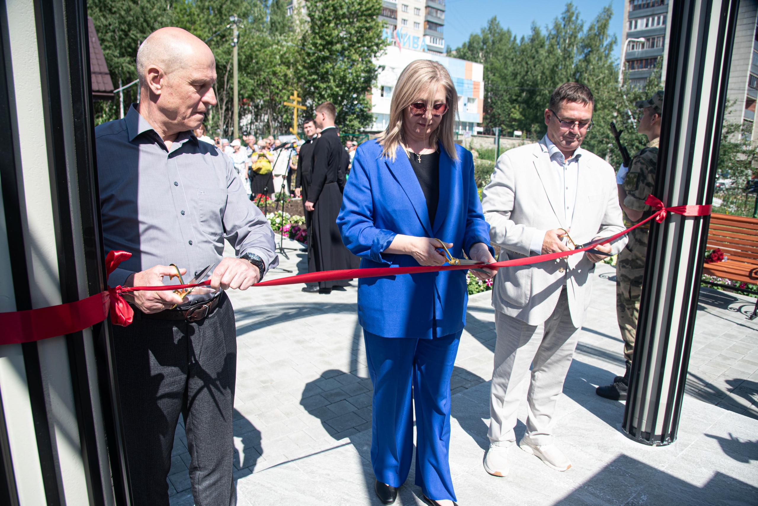 По окончании Литургии и Крестного хода на территории храма был открыт и освящен памятник — поклонный Крест в память о почивших Воинах, сооруженный в рамках программы топливной компании ТВЭЛ «Радиус доверия». С приветственными словами выступили: начальник отдела по связям с общественностью «УЭХК» Борисова Вера Александровна, заместитель Главы Новоуральского городского округа Неверов Александр Владимирович, генеральный директор ООО «Рукор» Коровин Рудольф Рудольфович, настоятель храма иерей Димитрий Лисник, проектировщик памятника Стоценко Анна Эдуардовна, военный комиссар города Новоуральска Верхотуров Алексей Юрьевич, от лица родителей погибших Воинов со словами благодарности в создании памятника обратился Курзанов Андрей Викторович.