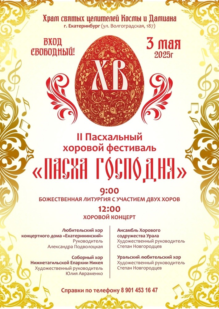 Приглашаем на II Пасхальный фестиваль в храме Космы и Дамиана (г. Екатеринбург, ул. Волгоградская, 187)