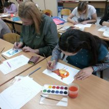 На практике педагоги и воспитатели поработали над декоративным изображением птицы, применив полученные на семинаре знания. Все работы участников получились яркие и оригинальные.
