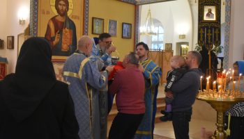 По завершении крестного хода и чина славления образа Божией Матери «Всех скорбящих Радость» и молитвы к собравшимся в Вознесенском соборе обратился иерей Григорий Елохин. Батюшка передал благословение и благопожелания по случаю престольного праздника от митрополита Екатеринбургского и Верхотурского Евгения, неустанно заботящегося о пастве в период отсутствия на Нижнетагильской земле правящего архиерея, и сказал: