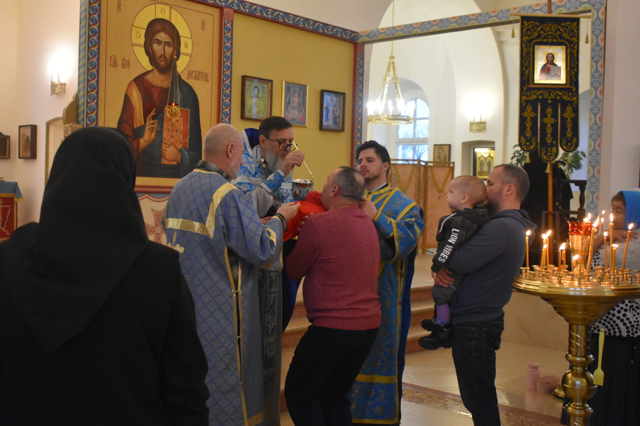 По запричастном стихе проповедь о празднике иконы Божией Матери «Всех скорбящих Радость» произнес иерей Константин Столов. Батюшка напомнил о двух евангельских сестрах Марфе и Марии (Лк. 10, 38–42) и том, как в жизни скорбь преображается в радость:
