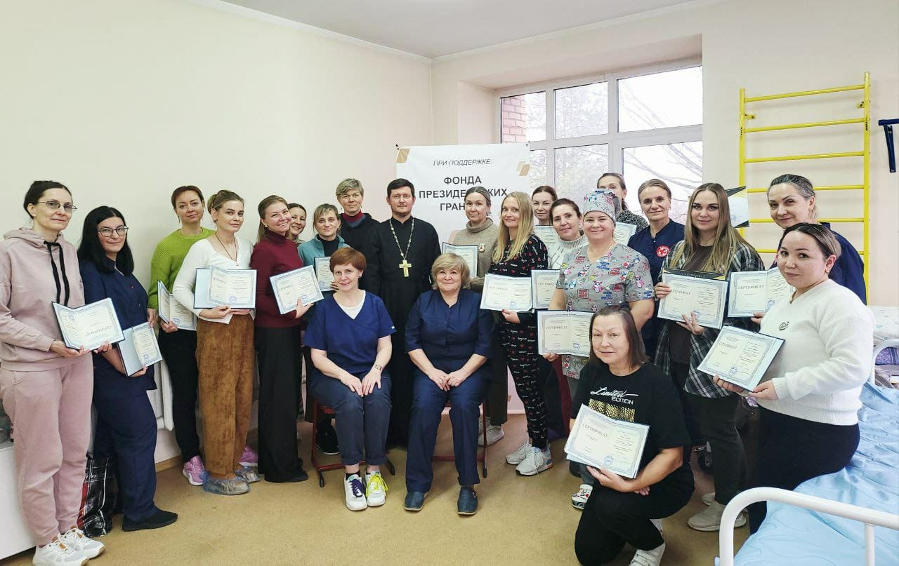 В октябре-ноябре старшая сестра милосердия Ирина Николаевна Скрипина прошла онлайн-обучение в школе сестер милосердия. Проект реализуется под руководством настоятеля Пятницкого подворья Троице-Сергиевой Лавры отца Дионисий Попов при поддержке фонда Президентских грантов.