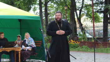 С душеспасительным словом к собравшимся обратился иерей Иоанн Седин. Батюшка поблагодарил всех участников,  пожелал подольше сохранять духовную радость и благодать в своих сердцах.  Затем из взрослых и совсем юных зрителей воспитатель детского сада «Ладушки» Наталья Александровна Бабкина организовала ансамбль ложечников. Небольшой инструктаж по исполнительскому мастерству от Натальи Александровны – и вот уже цокающий перестук разносится по округе. Ажурный ритмический рисунок следует вначале медленно, затем новоявленные музыканты чередуют удары правой руки о левую, левой о колено или плечо. Веселились от души. Разошлись прихожане не сразу, в руках уносили берёзовые ветви –  символ праздника Троицы.