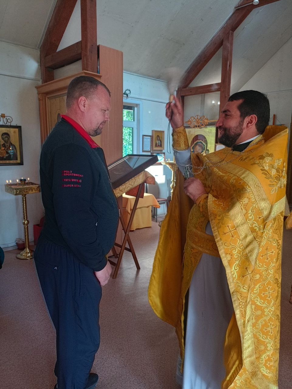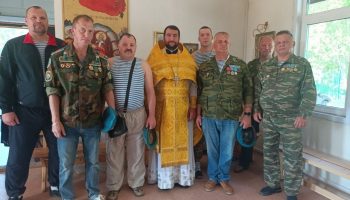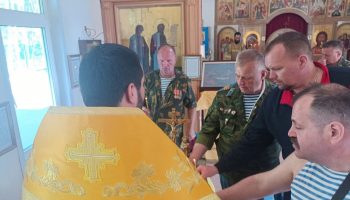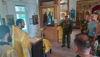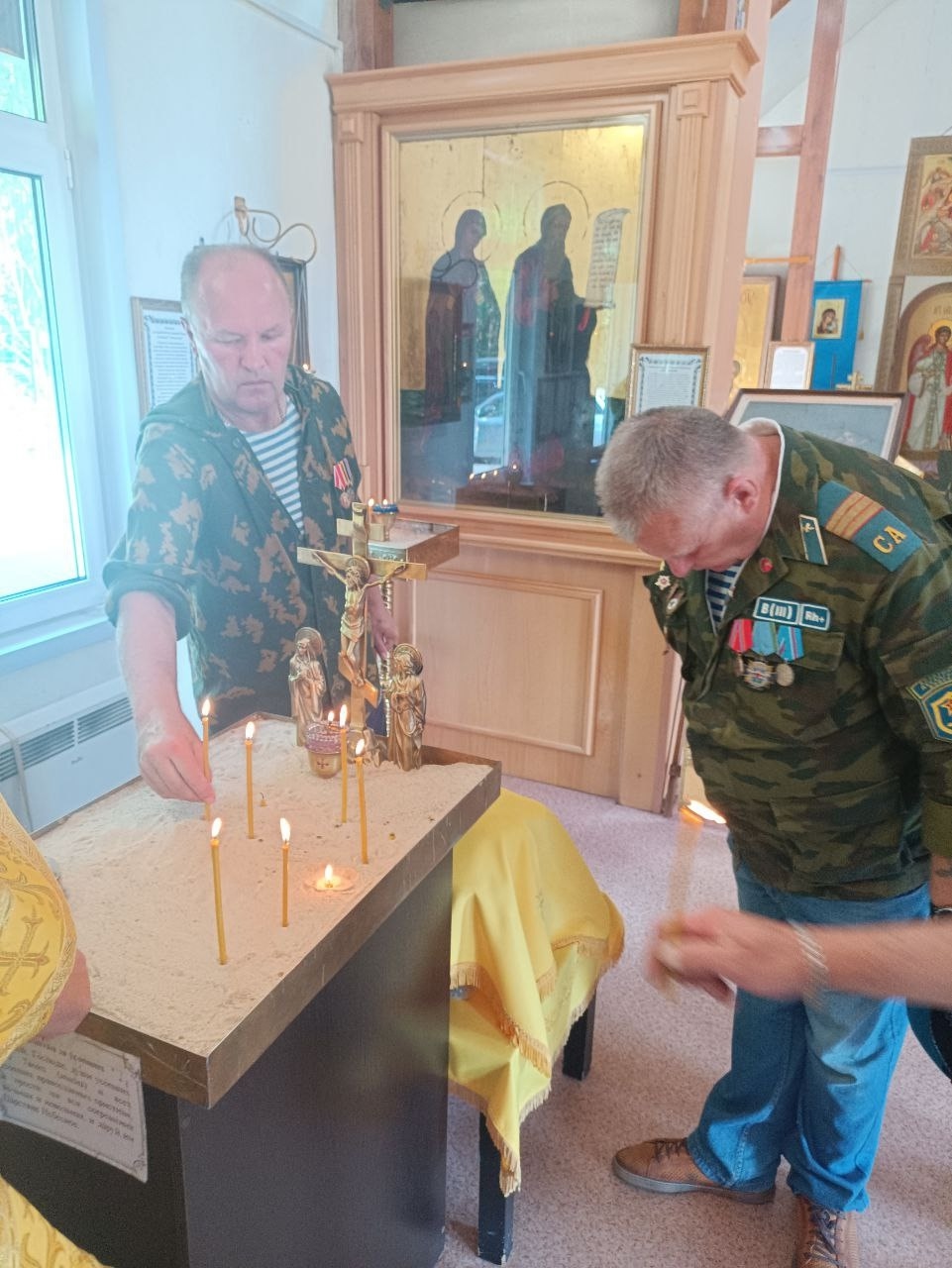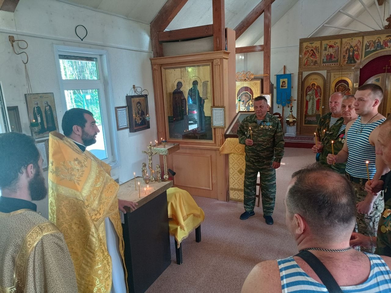 В этом году Воздушно-десантные войска празднуют 95-й день рождения. В храме собрались ветераны ВДВ, действующие сотрудники, десантники разных поколений, чтобы почтить память всех погибших при выполнении воинского долга. После заупокойной литии, священник обратился к воинам со словами назидания и поддержки, после чего окропил всех святой водой.