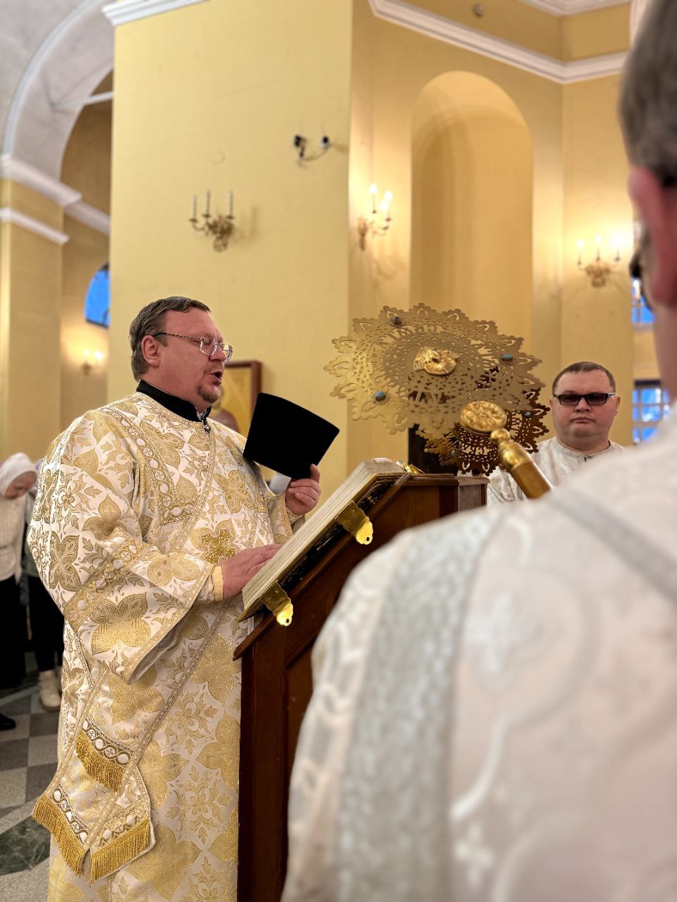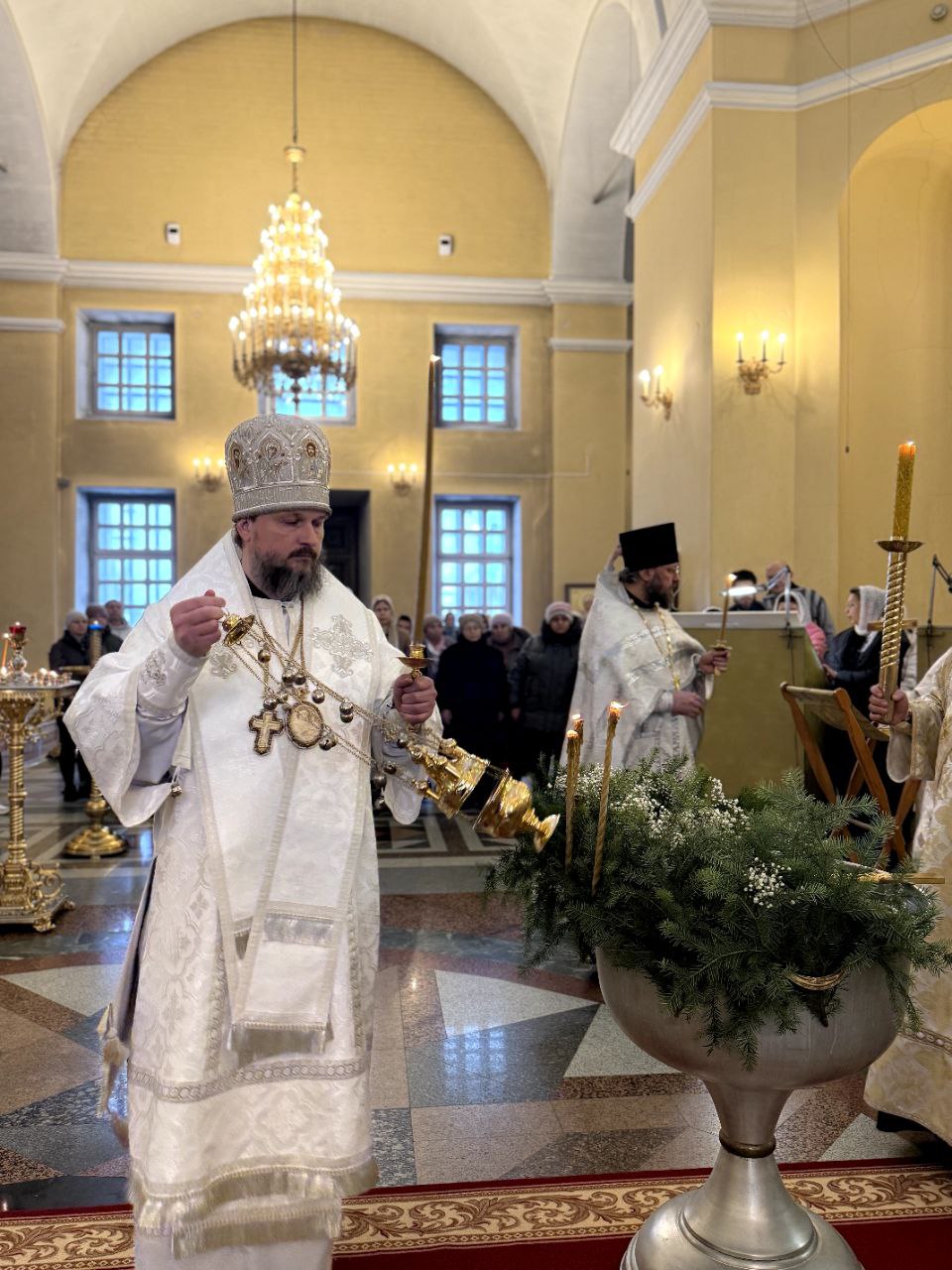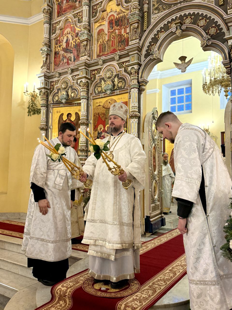Его Преосвященству сослужили: руководитель административного секретариата иерей Григорий Елохин, клирики и гости собора.