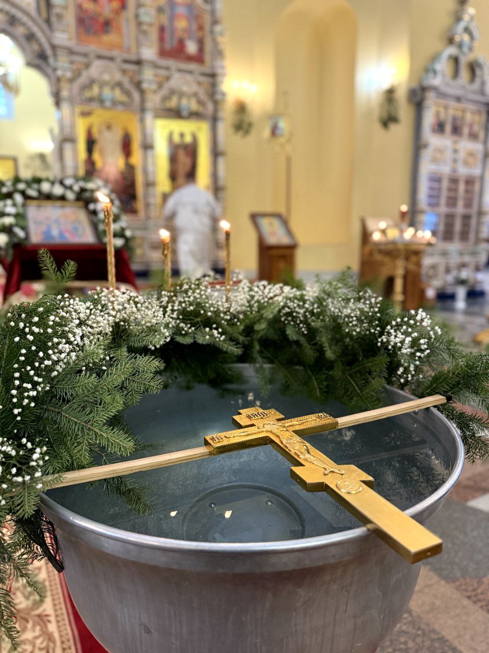 Епископ Мелитон совершил Великое водосвятие – особый чин, во время которого воспоминается евангельского событие, ставшее освящением самого естества воды через погружение в нее Бога во плоти. И вода становится великой святыней, по-гречески – «агиасмой».