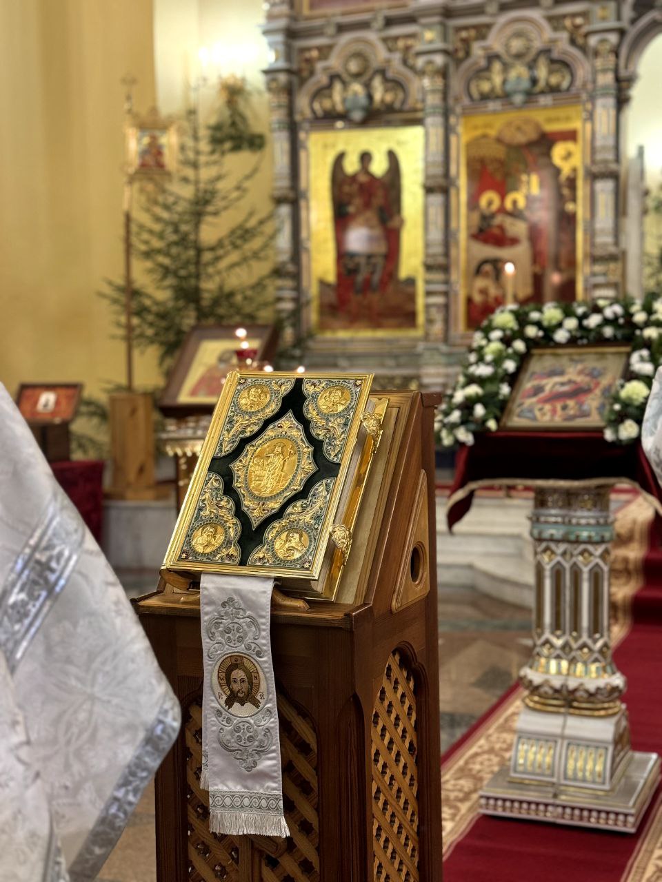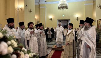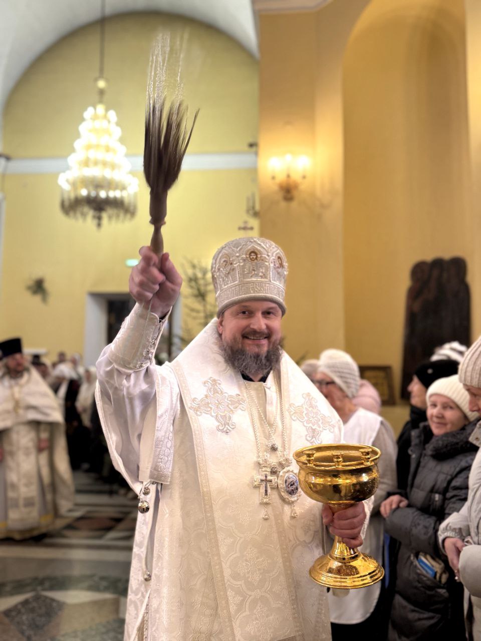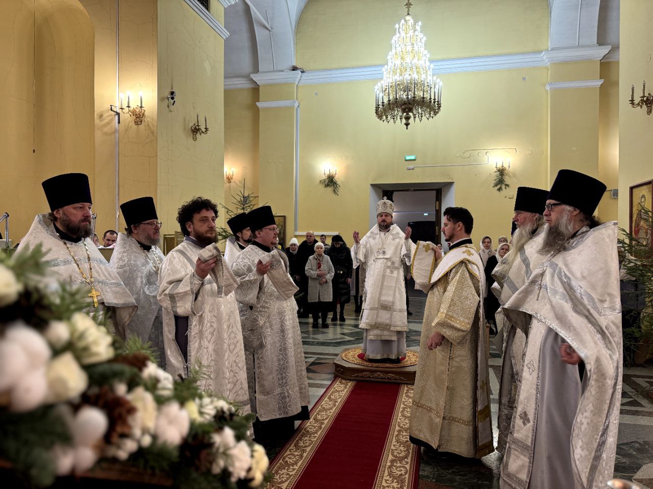 Его Преосвященству сослужили: руководитель административного секретариата и ключарь Преображенского Собора иерей Григорий Елохин, клирики и гости собора.