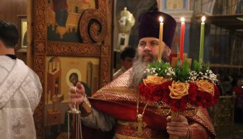 Его Преосвященству сослужили ключарь собора иерей Василий Рекун и клирики собора: иерей Николай Иванов и иерей Кирилл Бельмесов.
