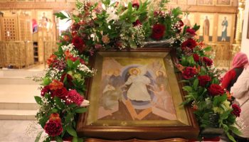 Богослужебные песнопения исполнил хор Свято-Троицкого кафедрального собора под управлением регента Ольги Александровны Муравлевой.