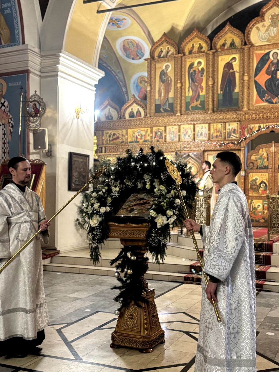Богослужебные песнопения исполнил кафедральный хор под управлением регента Ольги Муравлёвой.