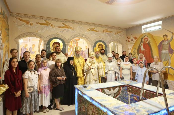Богослужение возглавил глава Среднеазиатского митрополичьего округа митрополит Викентий. Ему сослужили епископ Феодосий и епископ Бишкекский и Кыргызстанский Савватий. Новый храм является нижним приделом церкви преподобного Сергия Радонежского, расположенной на территории Синода Округа.