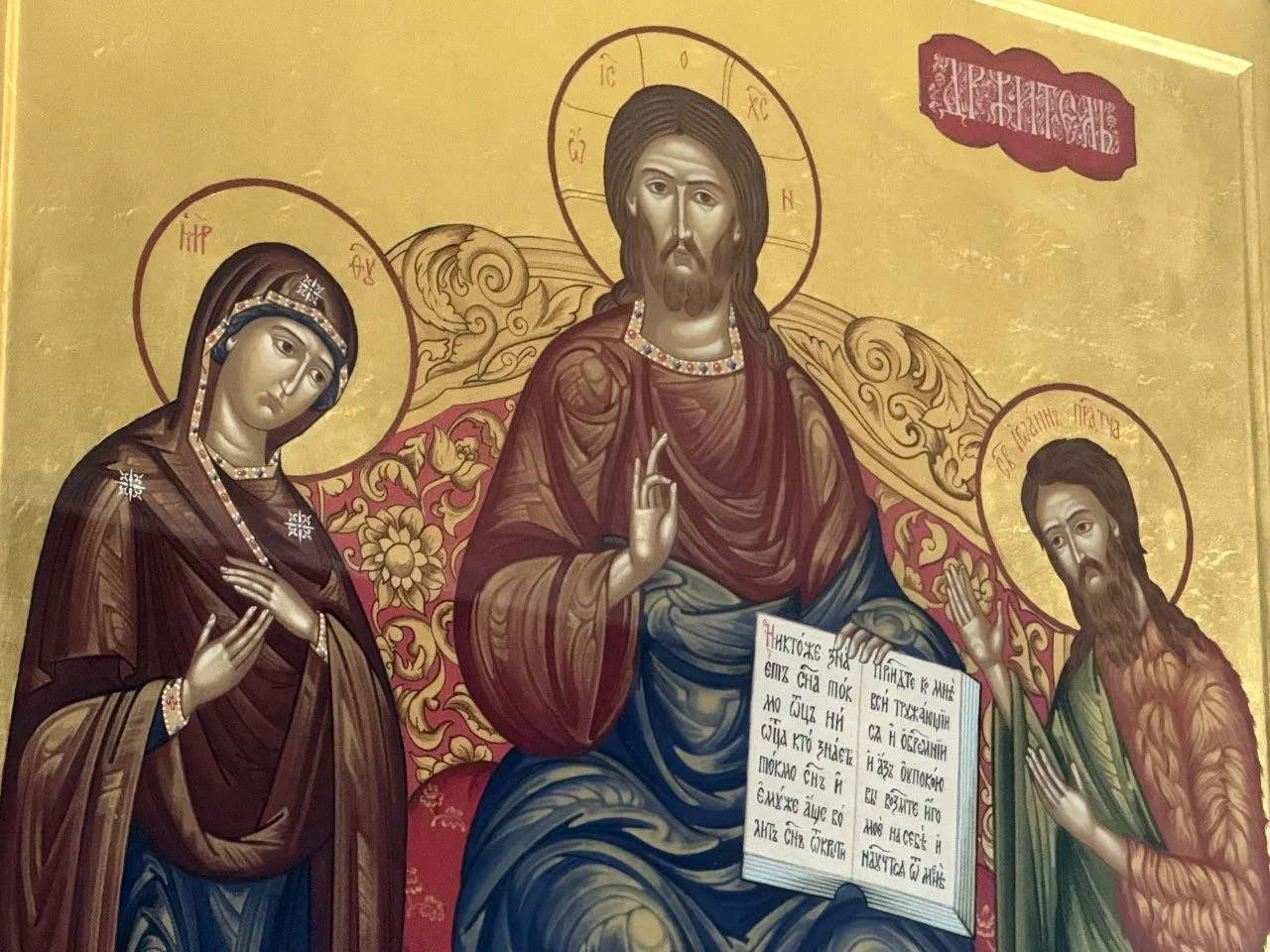 Взбранной Воеводе победительная, яко избавльшеся от злых, благодарственная восписуем Ти раби Твои, Богородице; но яко имущая державу непобедимую, от всяких нас бед свободи, да зовем Ти: